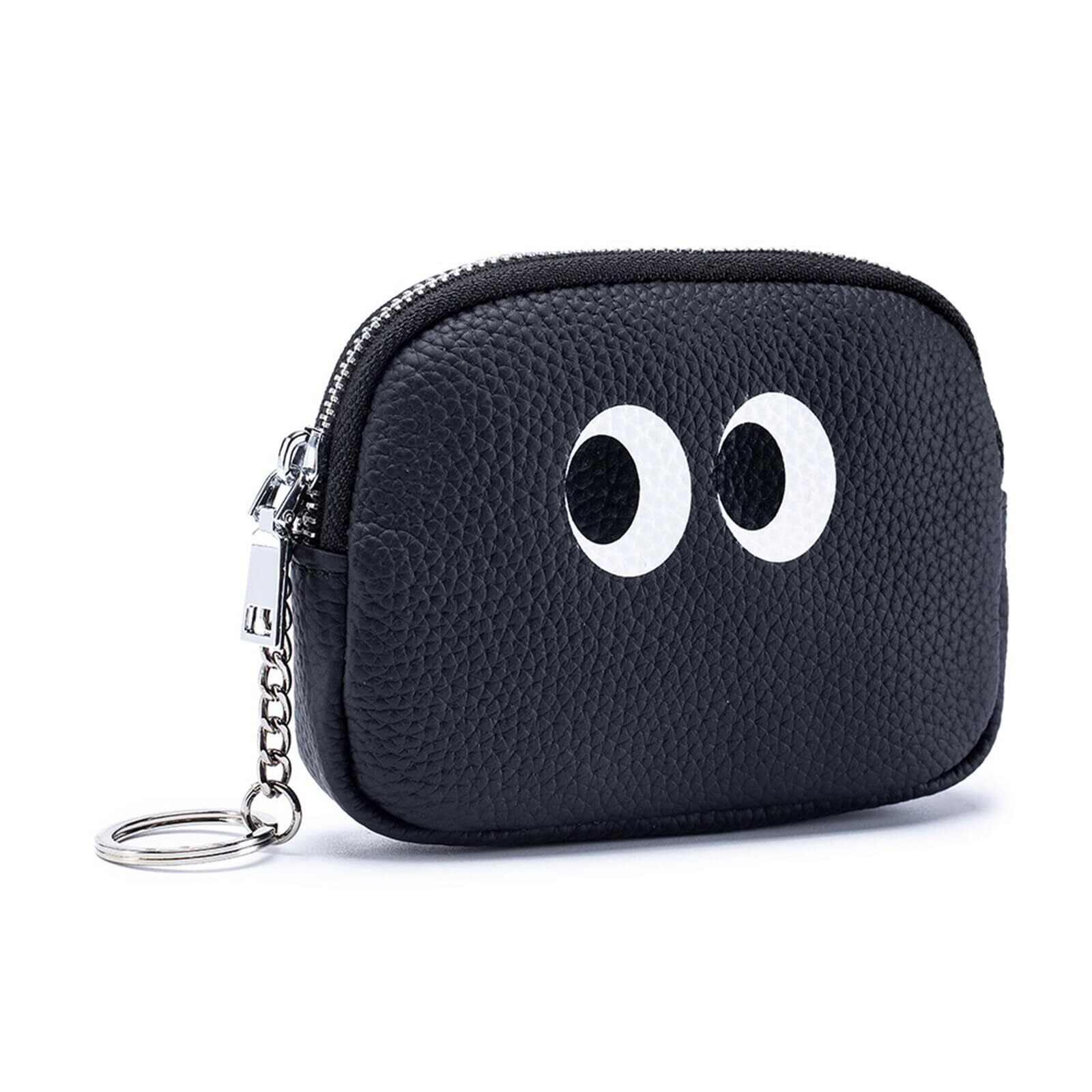 LOHGOU 本革ミニコインケース 可愛い小銭入れキーホルダー付き 小さな小銭入れ レザーコインケース 軽量 アクセサリーバッグ (ブラック)