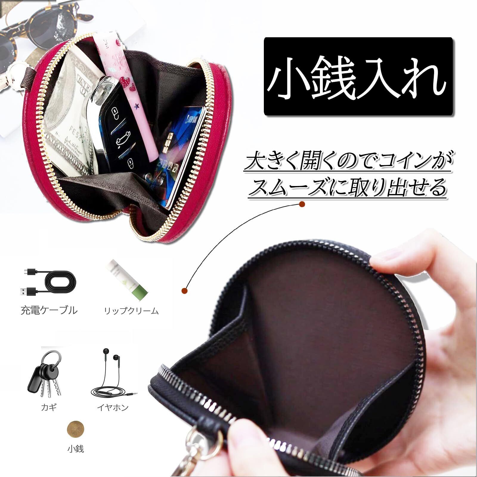 【小銭入れ&小物入れ】ファスナーを開けるとすぐにコインが見えるので、しまうのも簡単です。 コンパクトで大容量の小銭入れ、バッグの中で嵩張ることもない。 小銭、鍵、イヤホン、口紅、薬、印鑑、指輪などのアクセサリーを収納できる、毎日の通勤に最適なコンパクトサイズ。