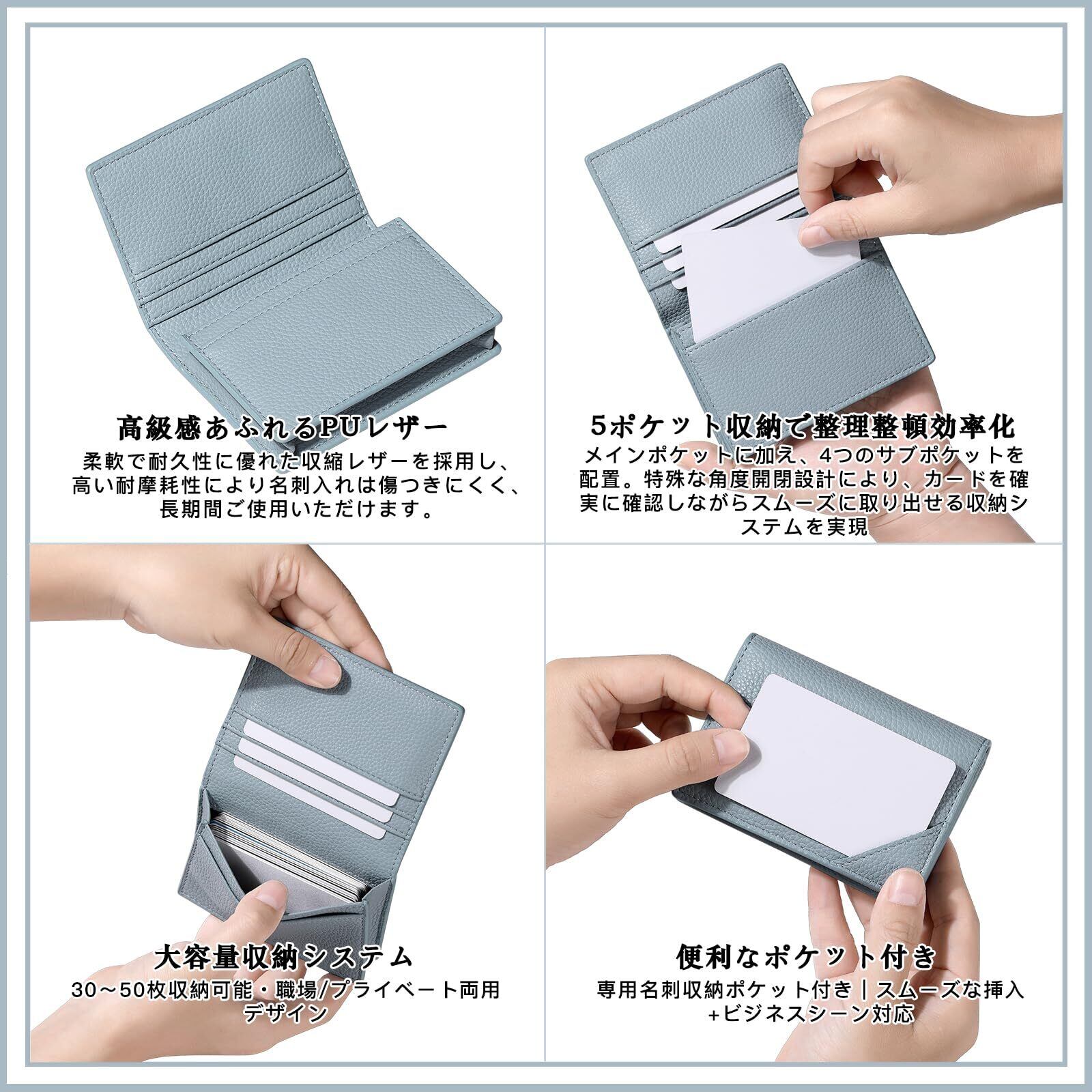 [MORFFEYIA] 名刺入れ レディース PUレザー 選べる6色 大容量40枚収納 多機能 名刺ケース 取り出しやすい ビジネス 贈り物 めいしいれ (ブルー)