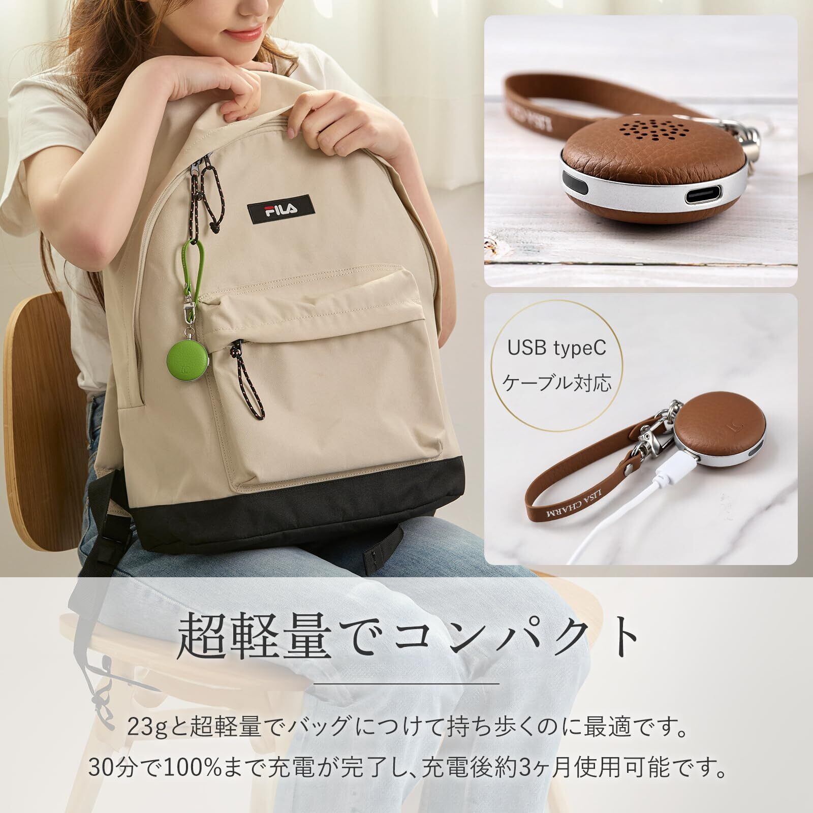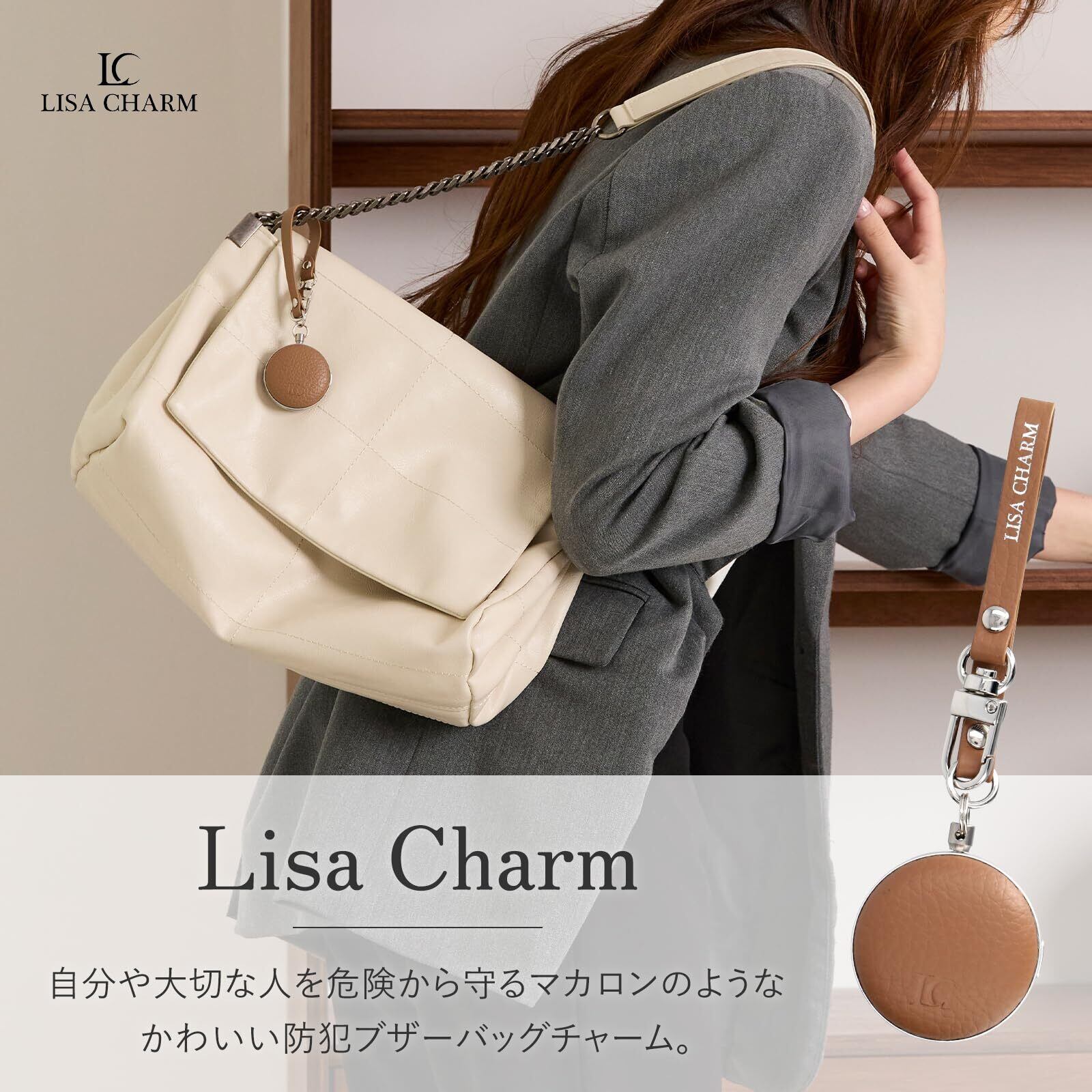 防犯ブザー 防犯アラーム Lisa Charm (リサチャーム) 大人用防犯ブザー 女性用防犯ブザー 可愛い防犯ブザー おしゃれ 防犯ブザー バッグチャーム 本革 ハンドメイド 超軽量
