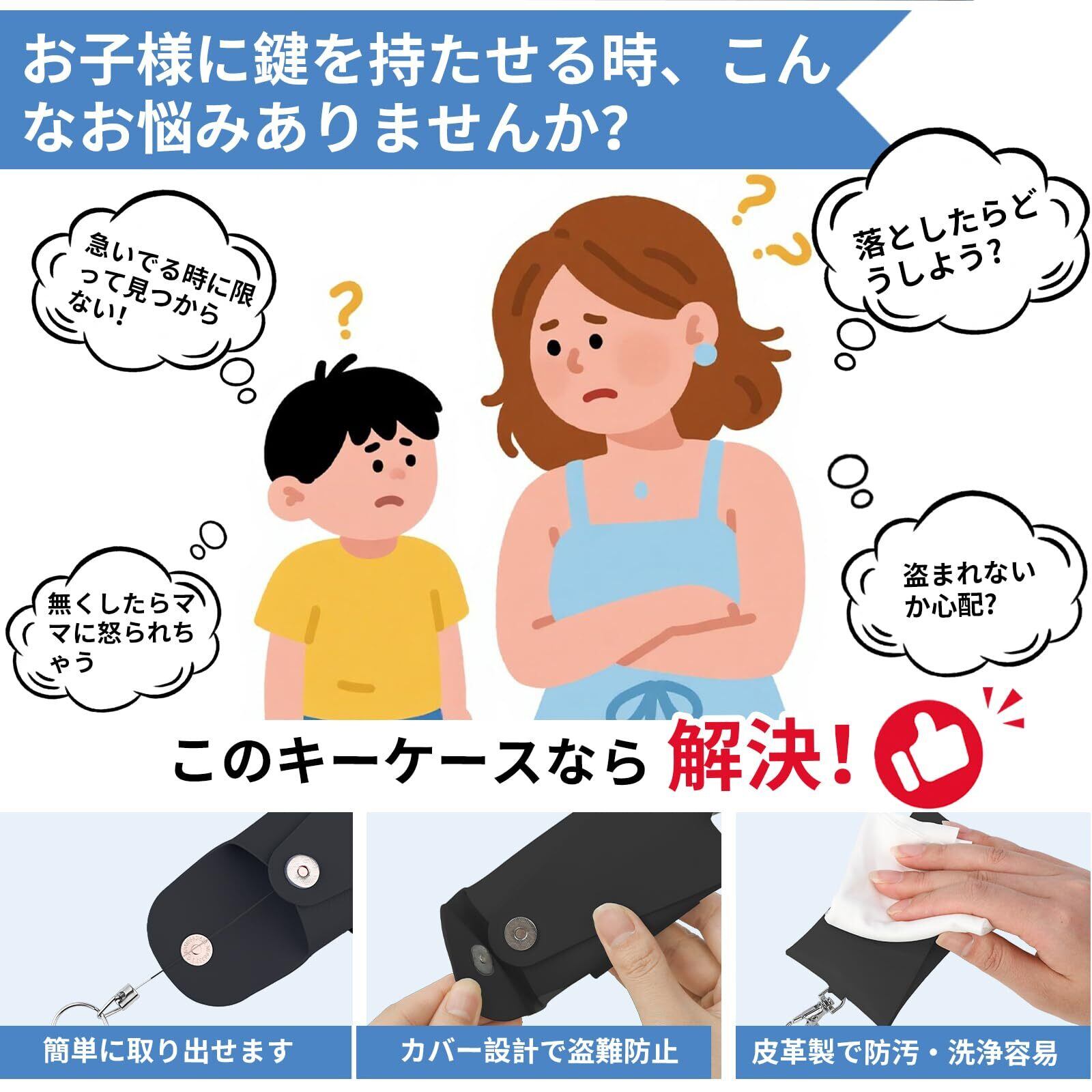 [wuernine] リール付き キーケース ランドセル用 子供 男の子 女の子 小学生用 マグネットボタンで固定紛失防止 盗難防止 目立たない ランドセル肩ベルトに装着可能 可愛い 5色展開の合成皮革製 キーを守る 登下校も安心