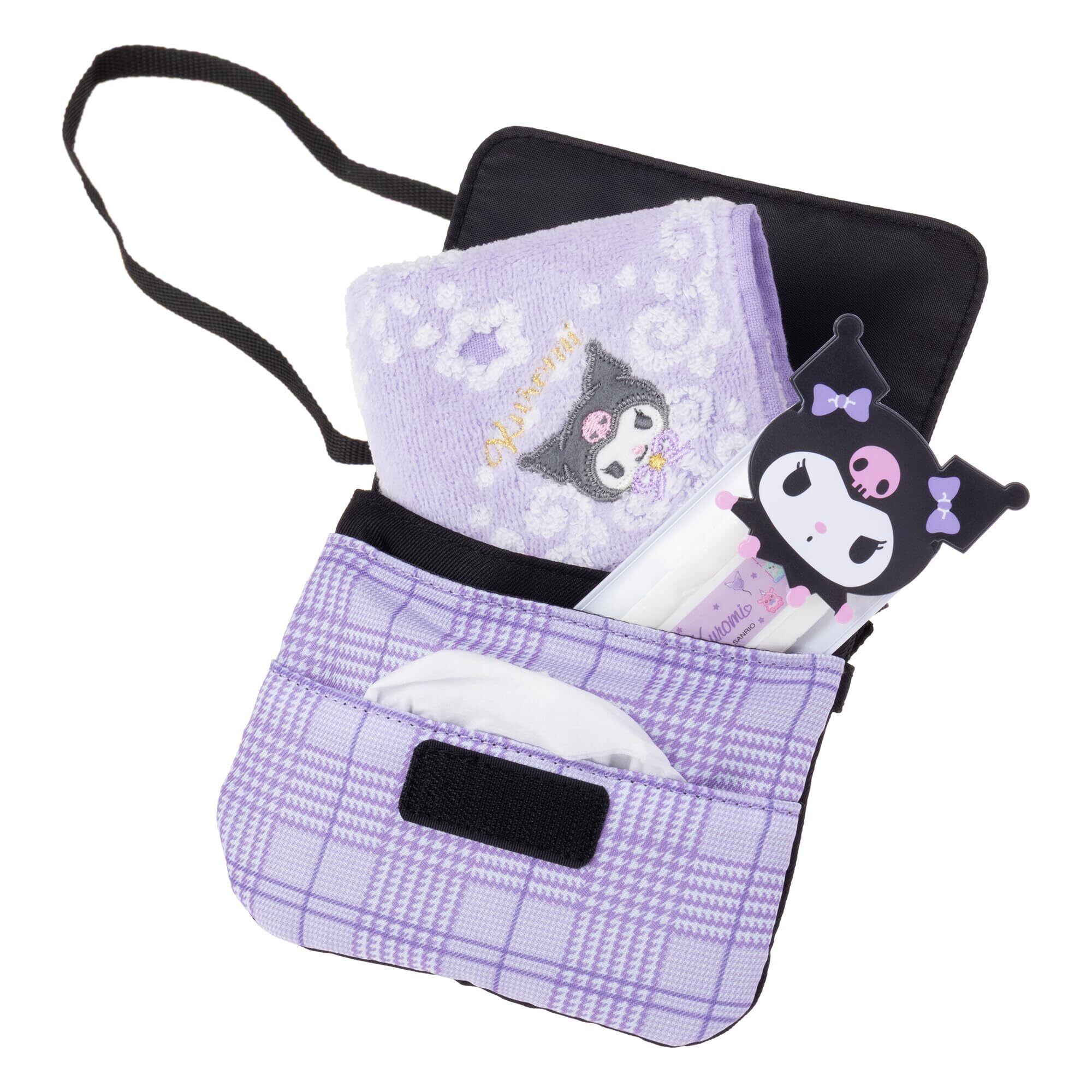面ファスナー式開閉。内側:オープンポケット1、ティシュポケット1。洋服のウエスト部分にクリップで挟むだけで、ポケット代わりに使える。リップクリームやヘアアクセサリー、ハンカチ、ポケットティシュ、マスク、ばんそうこうなどの小物が入る。