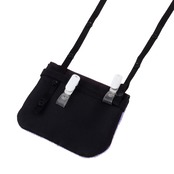 本体サイズ:約幅14×奥行1×高さ12cm(※ショルダー紐、クリップ部分含まず)ショルダー紐の長さ:約90cm。主な材料・原料:ポリエステル