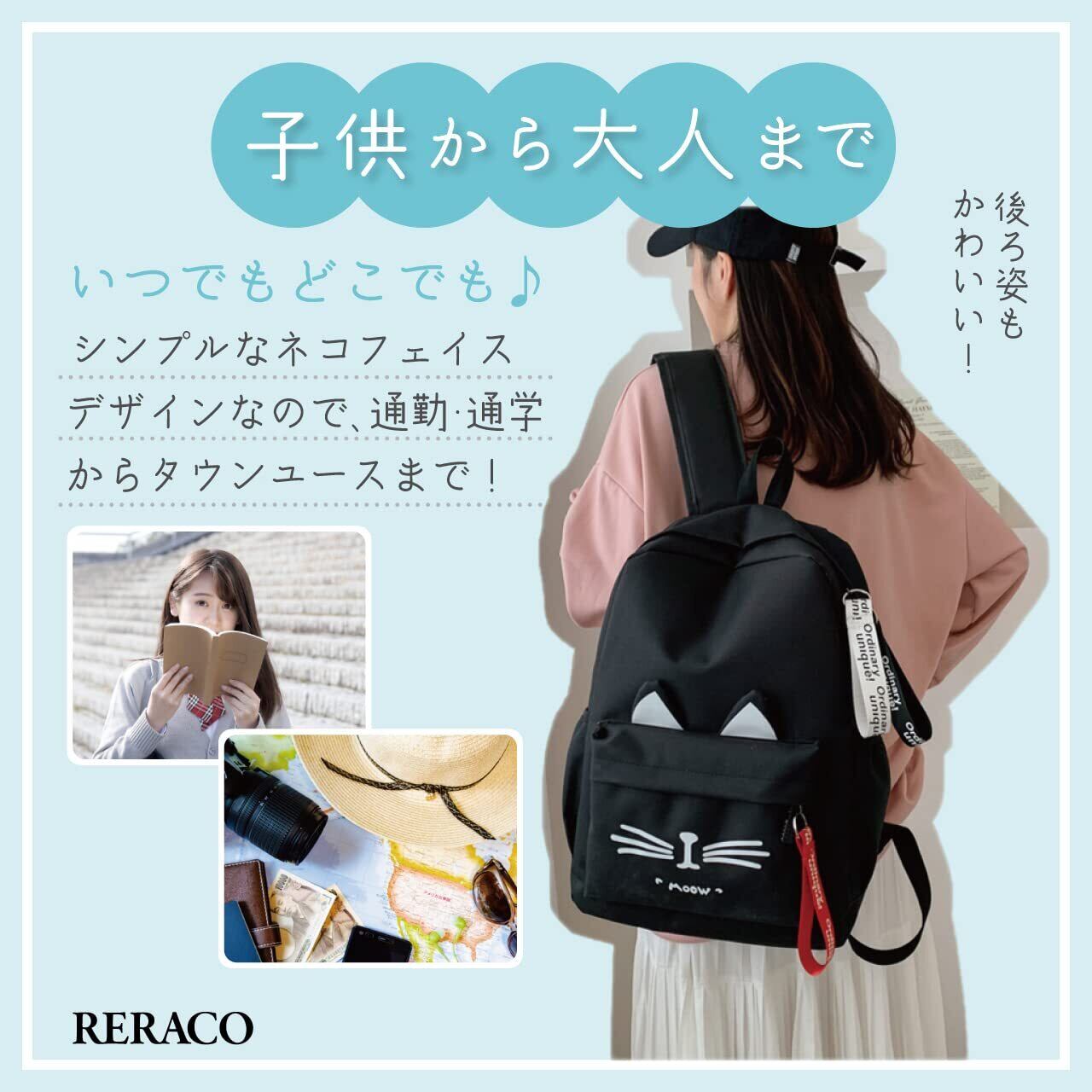 [RERACO] リュック バックパック 猫 ねこ 黒 猫耳 猫柄 大容量 軽量 ネコ ミミ 耳 柄 フェイス デザイン 女子 キッズ