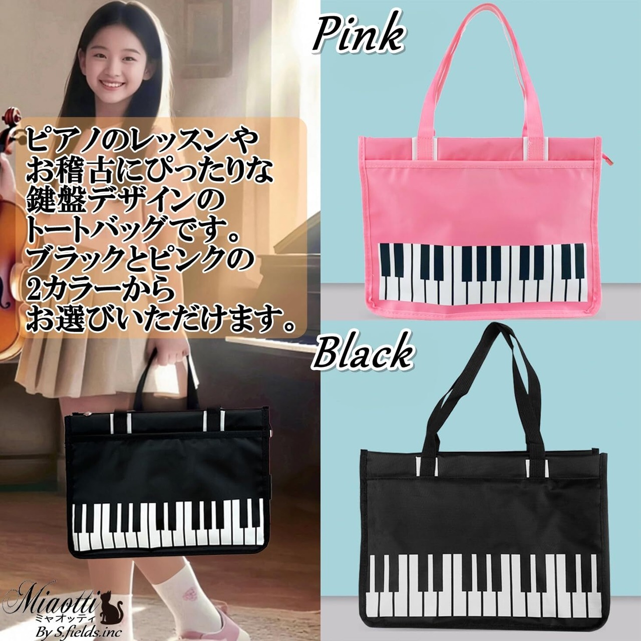 ピアノのレッスンやお稽古にぴったりな鍵盤デザインのトートバッグです。ブラックとピンクの2カラーからお選びいただけます。