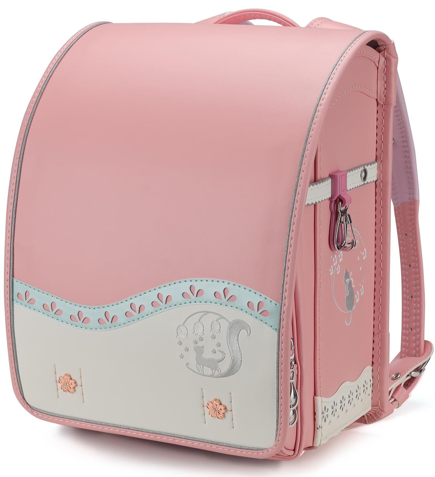 [バオバブの願い] 軽量 ランドセル 女の子 軽いランドセル ピンク 刺繍 かわいい ねこ 猫 鈴蘭 高級合皮 大容量 自動ロック 防水仕上げ 小学生通学鞄 japanese school bag(ピンク×ホワイト)