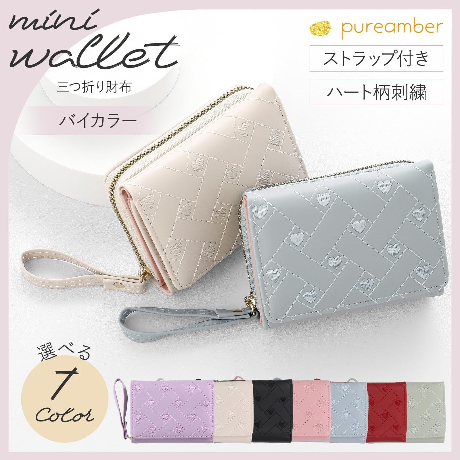 【在庫処分】[PUREAMBER] 財布小学生女の子 子供用財布 女の子 レディース 三つ折り コンパクト ミニウォレット 小銭入れ ラウンドファスナー ストラップ付 (ライラック パープル)