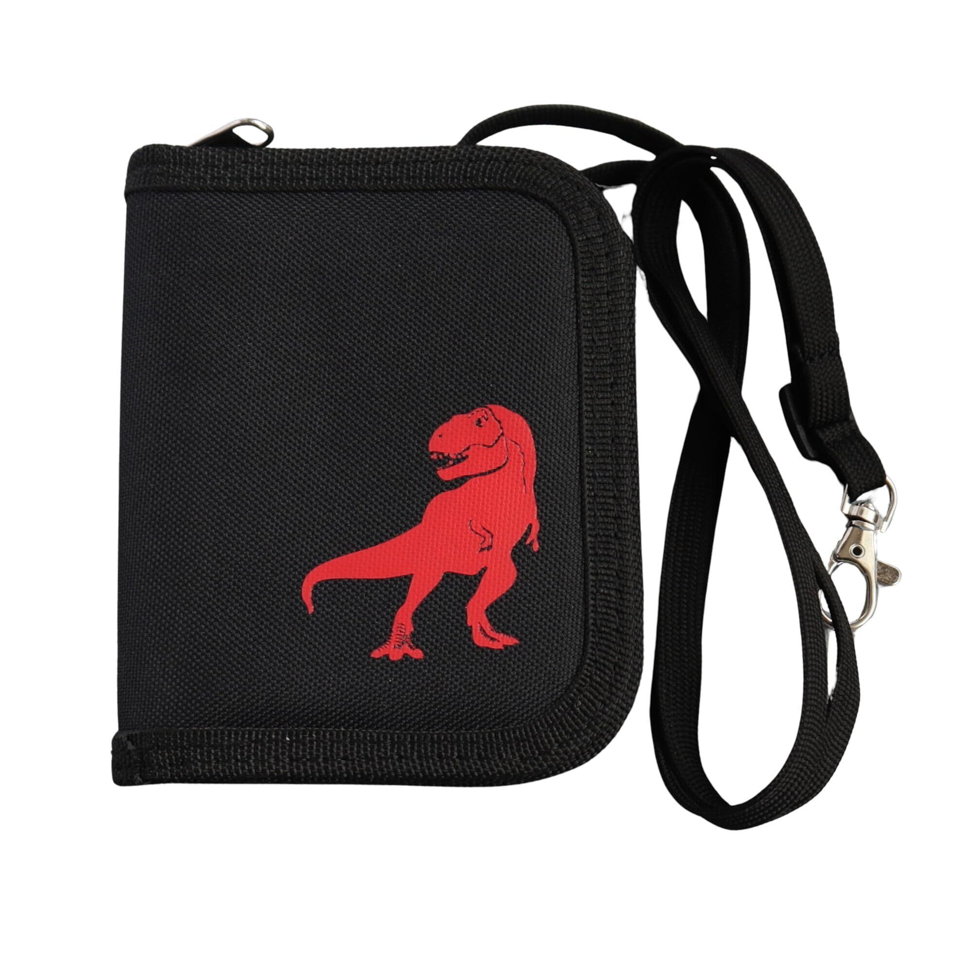 [現場専科] 財布 子供 小学生 紐付き 男の子 (黒 恐竜)
