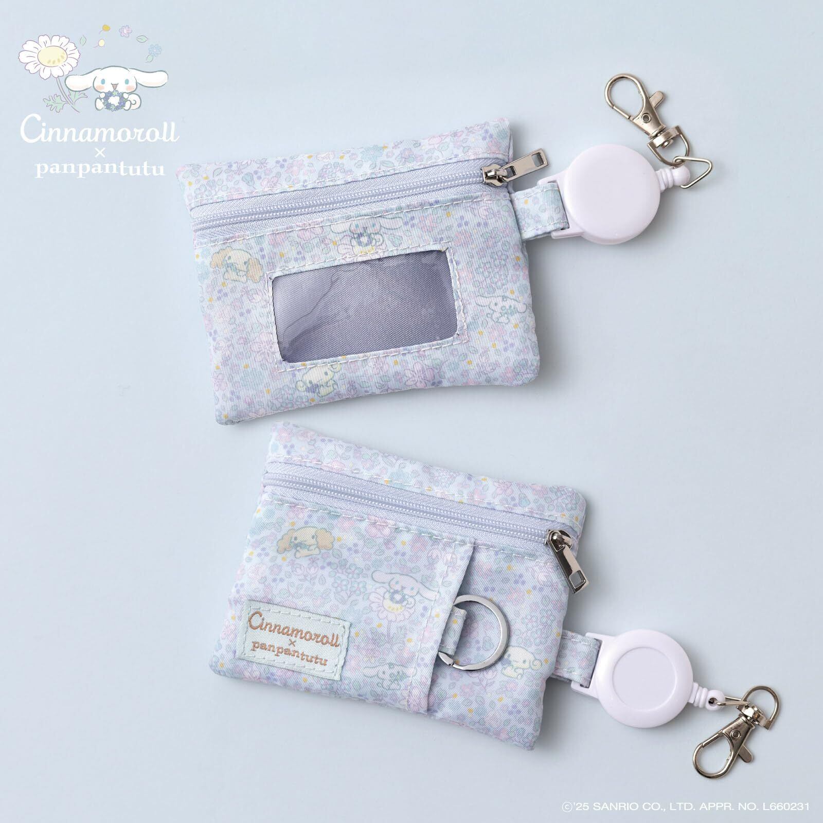 [panpantutu] パス&キーケース (リール付) (シナモロール) サンリオ パスケース ICカードケース 定期入れ 両面 伸縮可能 コインケース IDカード ホルダー 通学