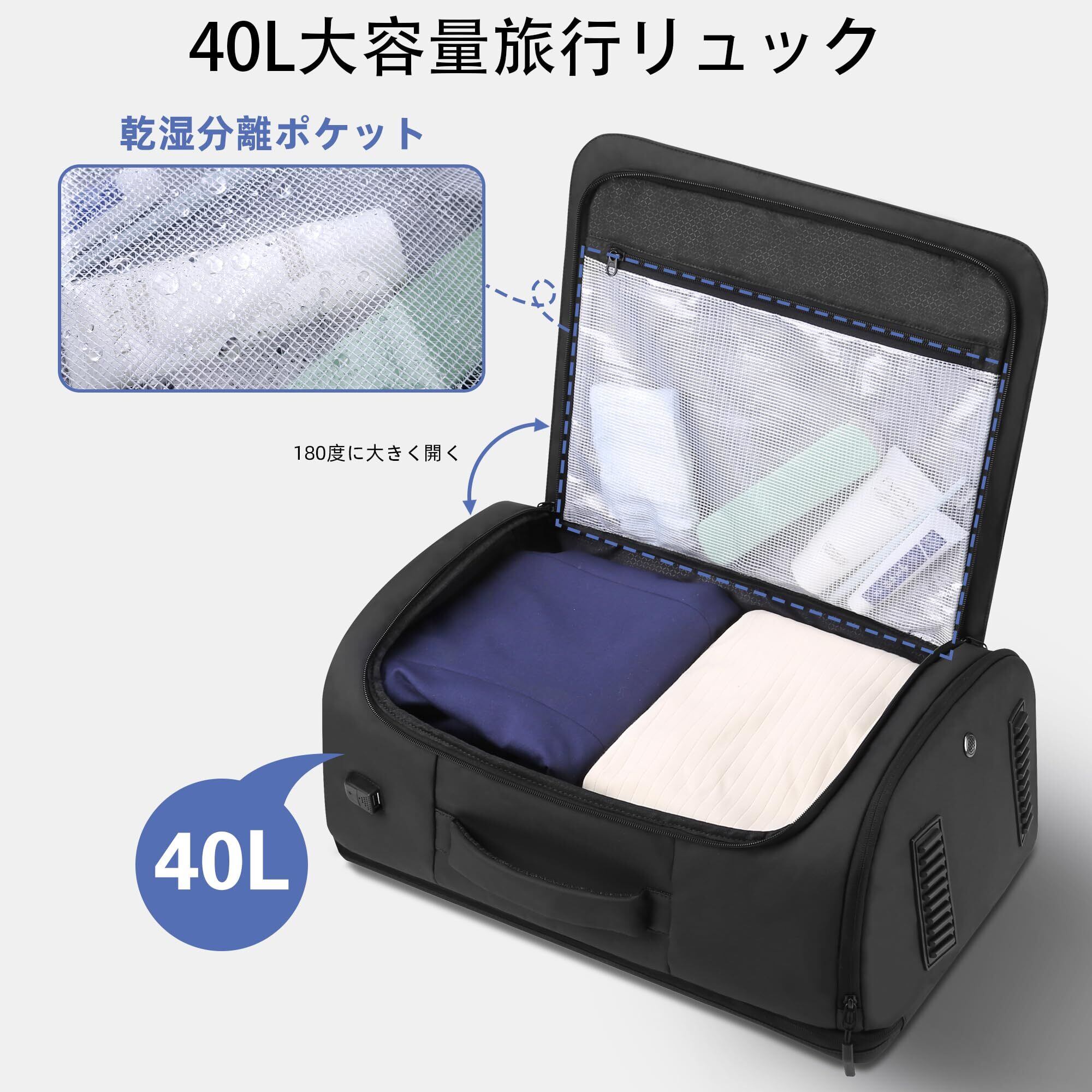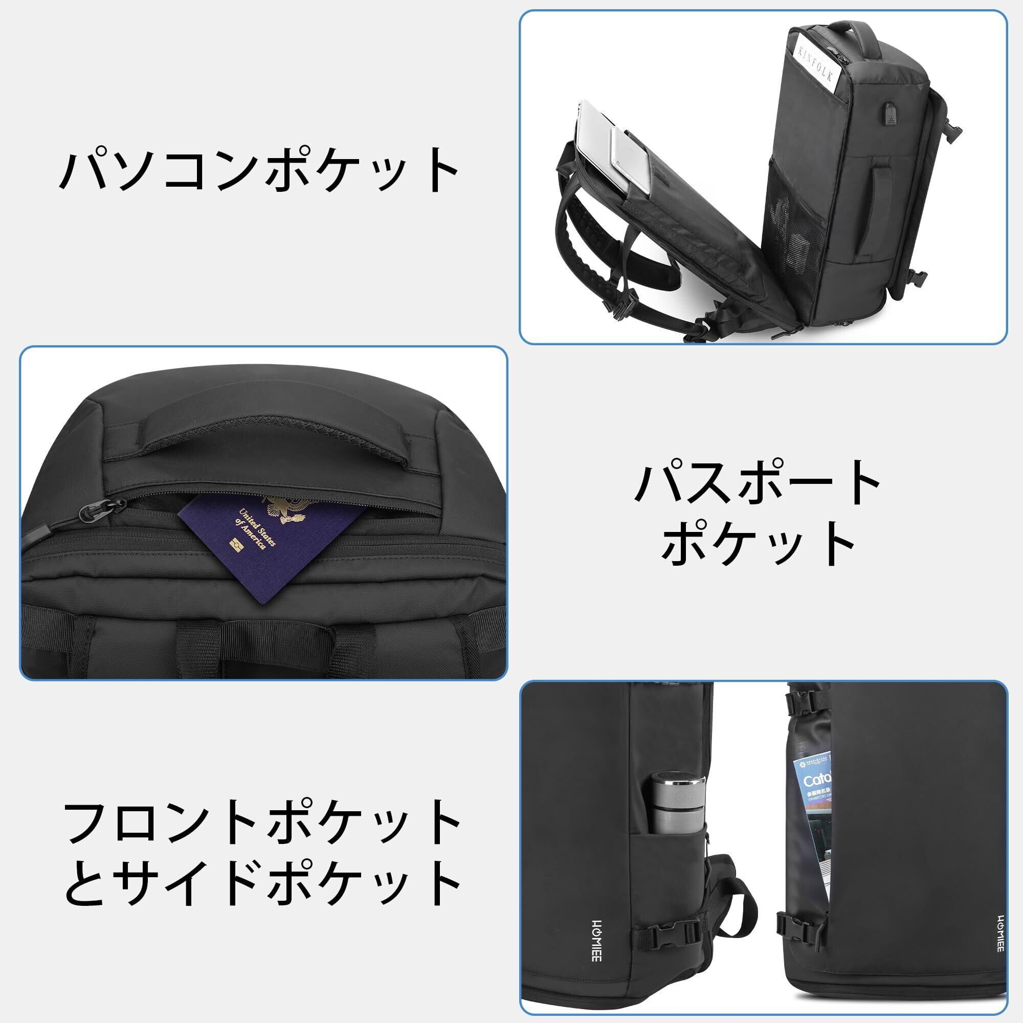 [HOMIEE] ビジネスリュック メンズ 大容量 40L 旅行 リュック 乾湿分離 トラベル バックパック シューズ収納 撥水 3WAY リュックサック 17.3型パソコン 機内持ち込み 15.6インチPC USBケーブル付きカバン 出張 通勤 通学 防災