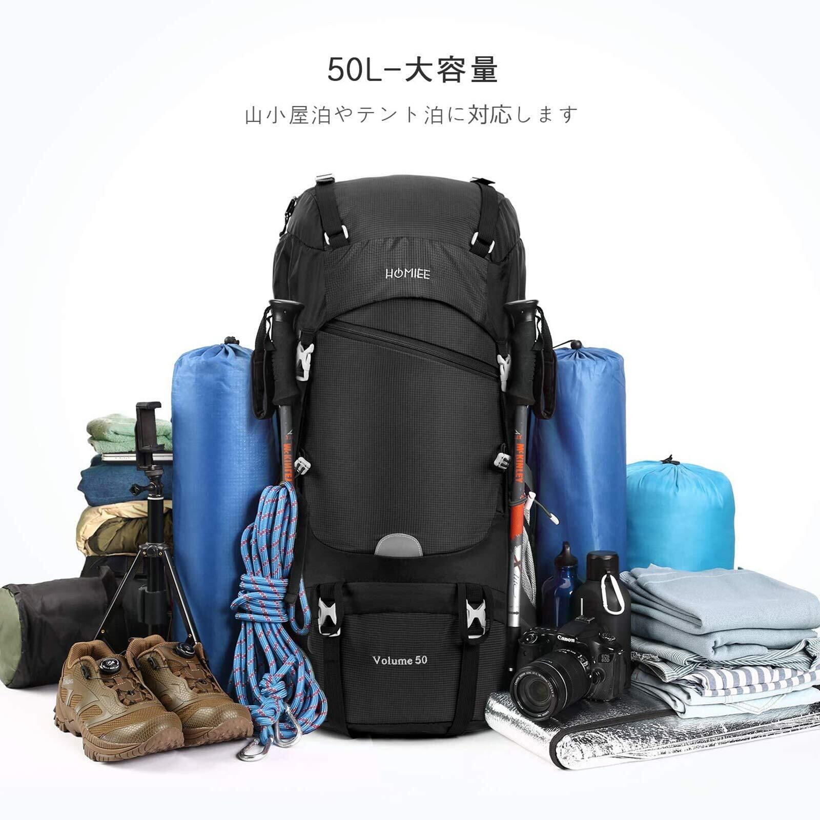 [HOMIEE] リュック 登山 50L アウトドア バッグ バックパック ザック 大容量 防水 ハイドレーション レインカバー付き 多機能 超軽量 収納性 登山用リュックサック ハイキング 防災 キャンプ 旅行 花見 遠足 避難