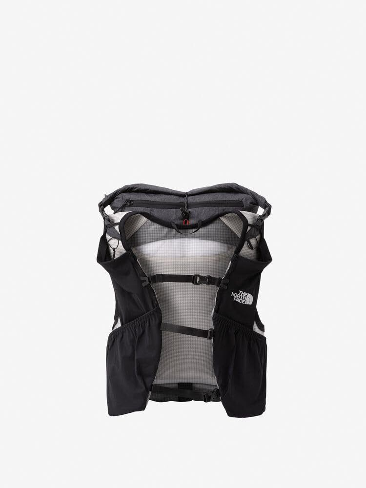 本格的なトレイルレース用の大型ランニングベストで軽量性と収納性を兼ね備えたTHE NORTH FACE SUMMIT SERIESの代表モデル『TR』、耐久性と軽さを両立したメインファブリックとストレッチ素材を使用しムレ感を軽減する通気性の高いモノメッシュを採用