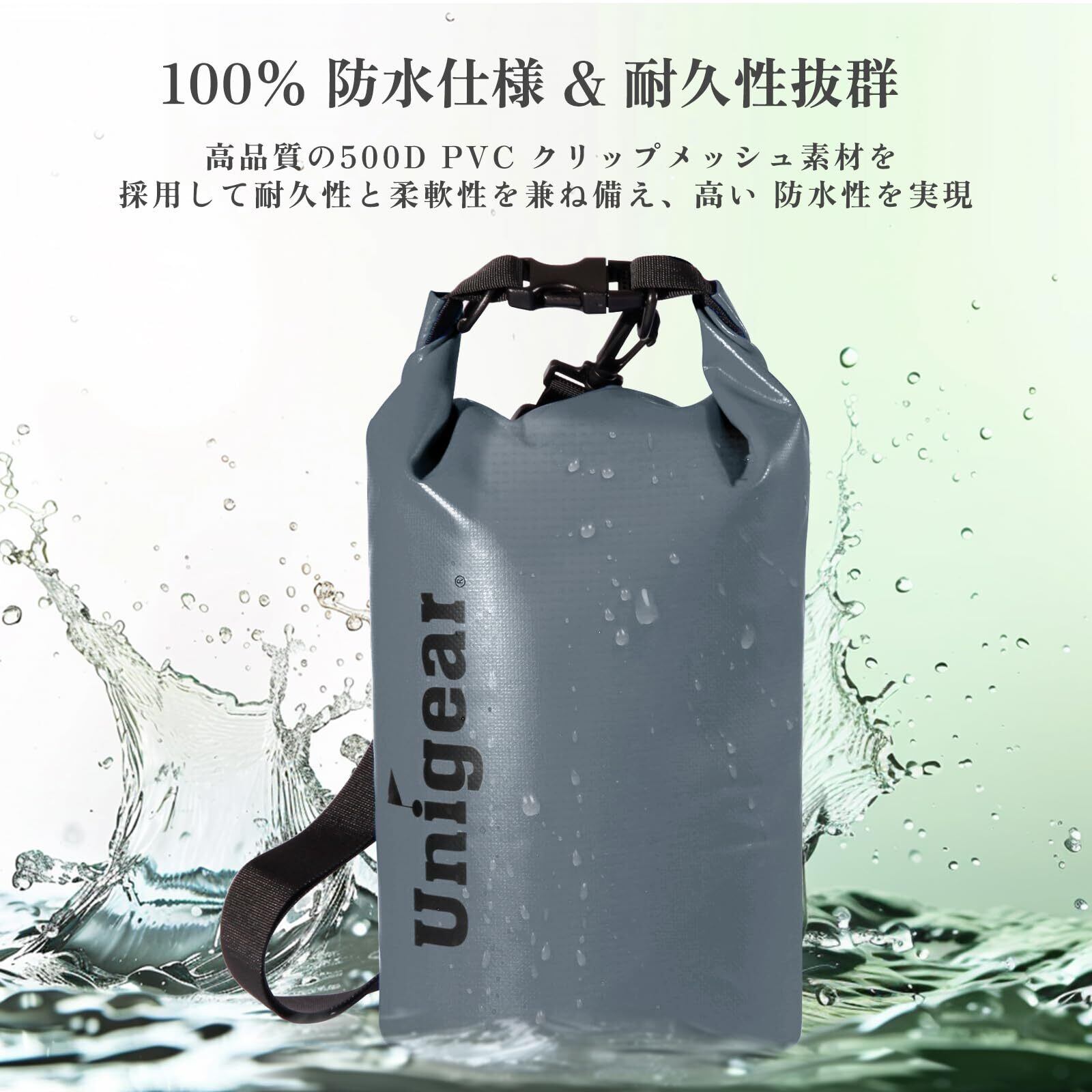 Unigear ドライバッグ 防水バッグ 防水ポーチ付き ドラム型 新型素材 防水 防塵 9色 6サイズ 2L 5L 10L 20L 30L 40L(灰色 5L)