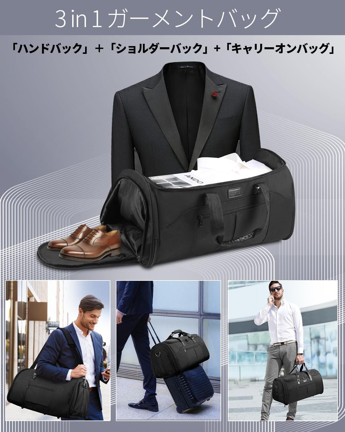 [HOMIEE] ガーメントバッグ 乾湿分離 スーツ収納/靴収納 メンズ/レディース ビジネスバッグ ボストンバッグ 45L 大容量 3WAY スーツバッグ 機内持ち込み 型くずれ防止 3泊4泊 シューズ 折り畳み 出張/旅行など