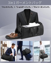 【3 in 1 ガーメントケース】ガーメントバッグとボストン式バッグの特徴を兼ね備えています。 「ハンドバック」+「ショルダーバック」+「キャリーオンバッグ」一体型のhomieeガーメントケース。手持ちの所は丈夫で柔らかいマジックテープが付いて、持ち歩くはよりやすいのハンドバック。取り外し可能のショルタ一ベルトが付属し、スタイルに合わせた使い分けが可能で、ショルダーバックとしても便利です。背面にはキャリーケースに取り付けられるように設計し、手に持たなくても持ち運べる仕様に。