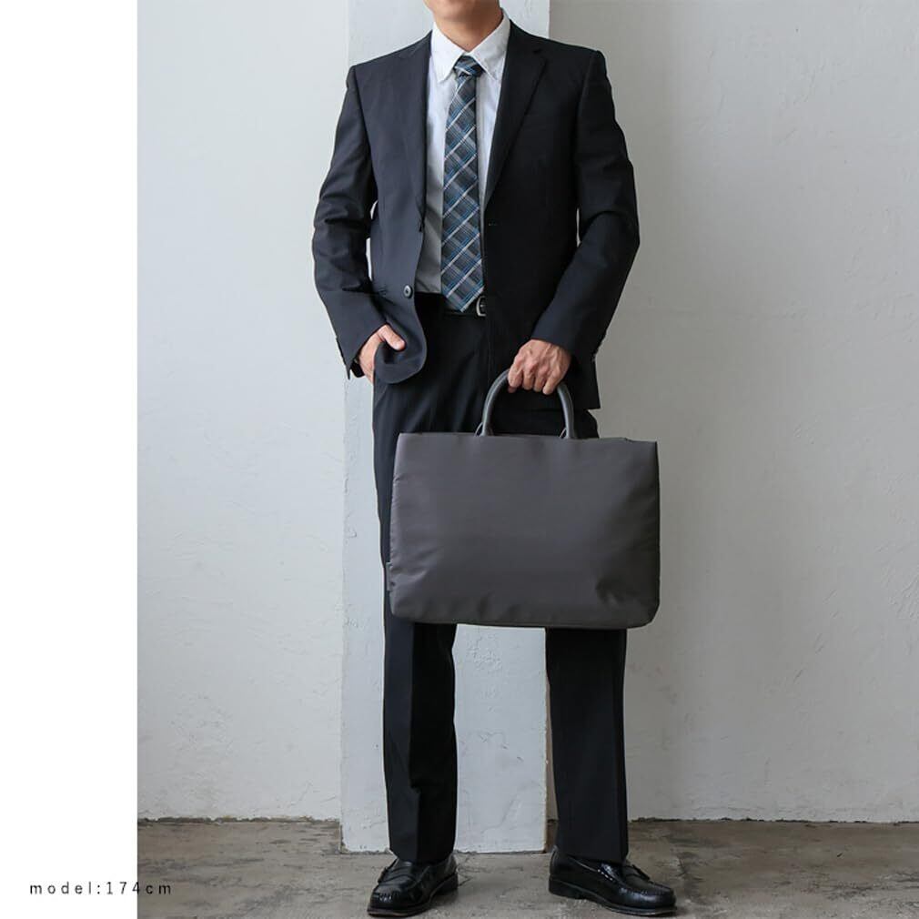 毎日の通勤におすすめの、A4サイズ対応 ポリエステル素材のPCビジネストートバッグ。 14インチクラスのPCを収納可能なスペースが付いています。 キズや擦れに強い軽量なポリエステル素材を使用。 スタイリッシュなシンプルデザインなので、男性女性共に使っていただけます。 肩掛け・斜め掛けができ、通勤に便利なPCビジネスバッグです。 スーツはもちろん、きれいめなジャケットコーデにも馴染み、洗練された印象を与えます。 オトナの男性がかっこよく持てる こだわりのビジネストートに仕上がりました。