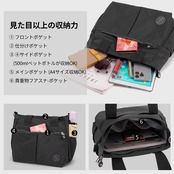 【ちょうどいいサイズ】 マチ14cm × 横幅32cm × 高さ27cm(ショルダー紐は調節可能) 素材:ナイロン、重量:0.38kg