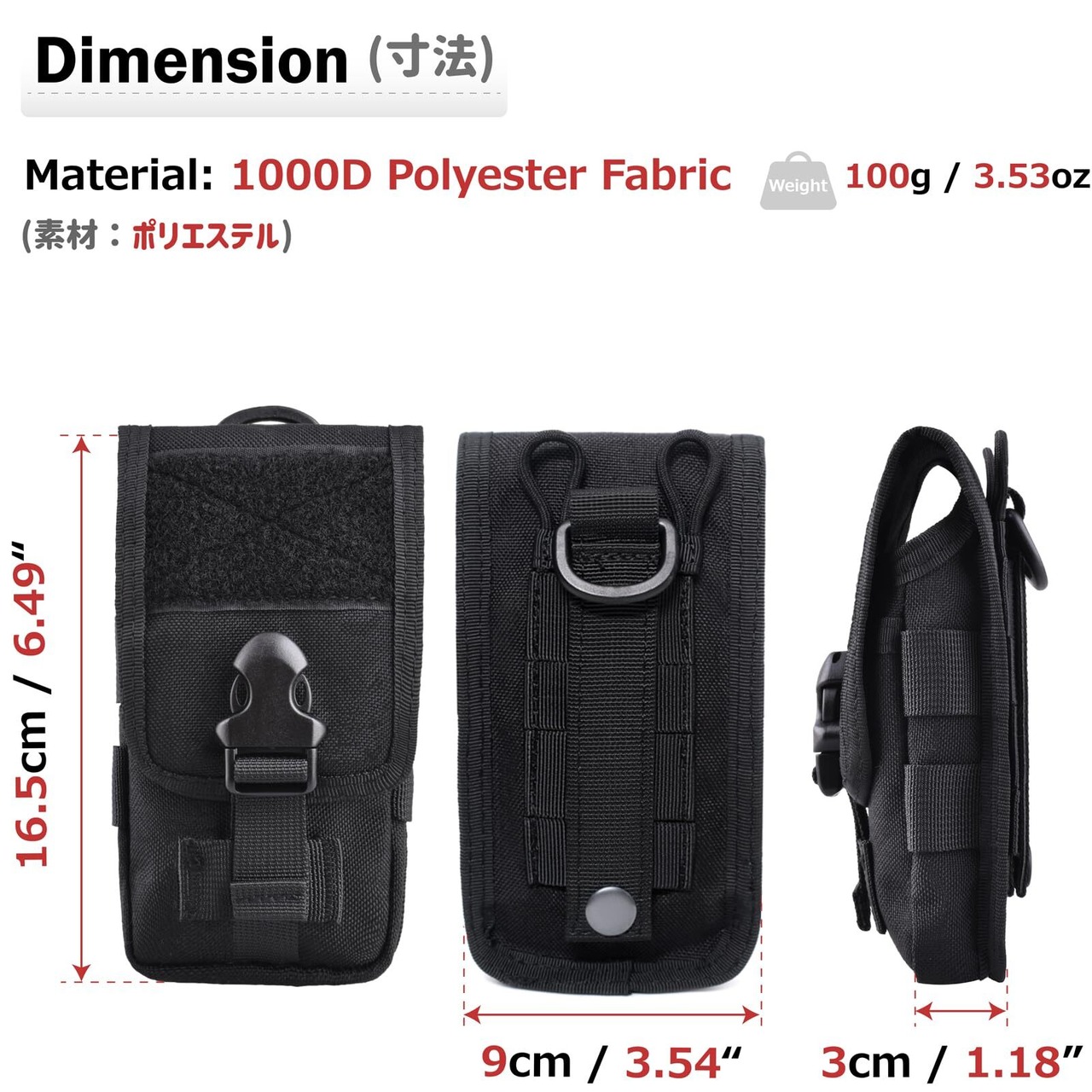 Azarxis スマホポーチ Molle対応 スマートフォン 手帳型 スマホケース モールシステム ユーティリティ EDCポーチ サバゲ― タクティカル ユーティリティポーチ (ブラック02)