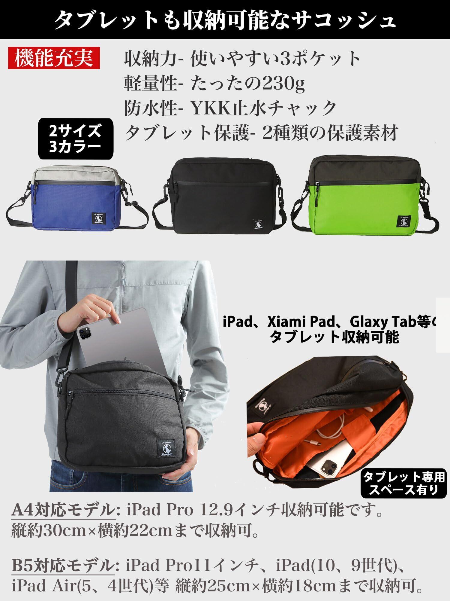 【人気商品】[Shoebill] サコッシュ バッグ ショルダーバッグ iPad 入る A4 B5 ナイロン 防水 登山 斜めがけ 軽量 大きめ