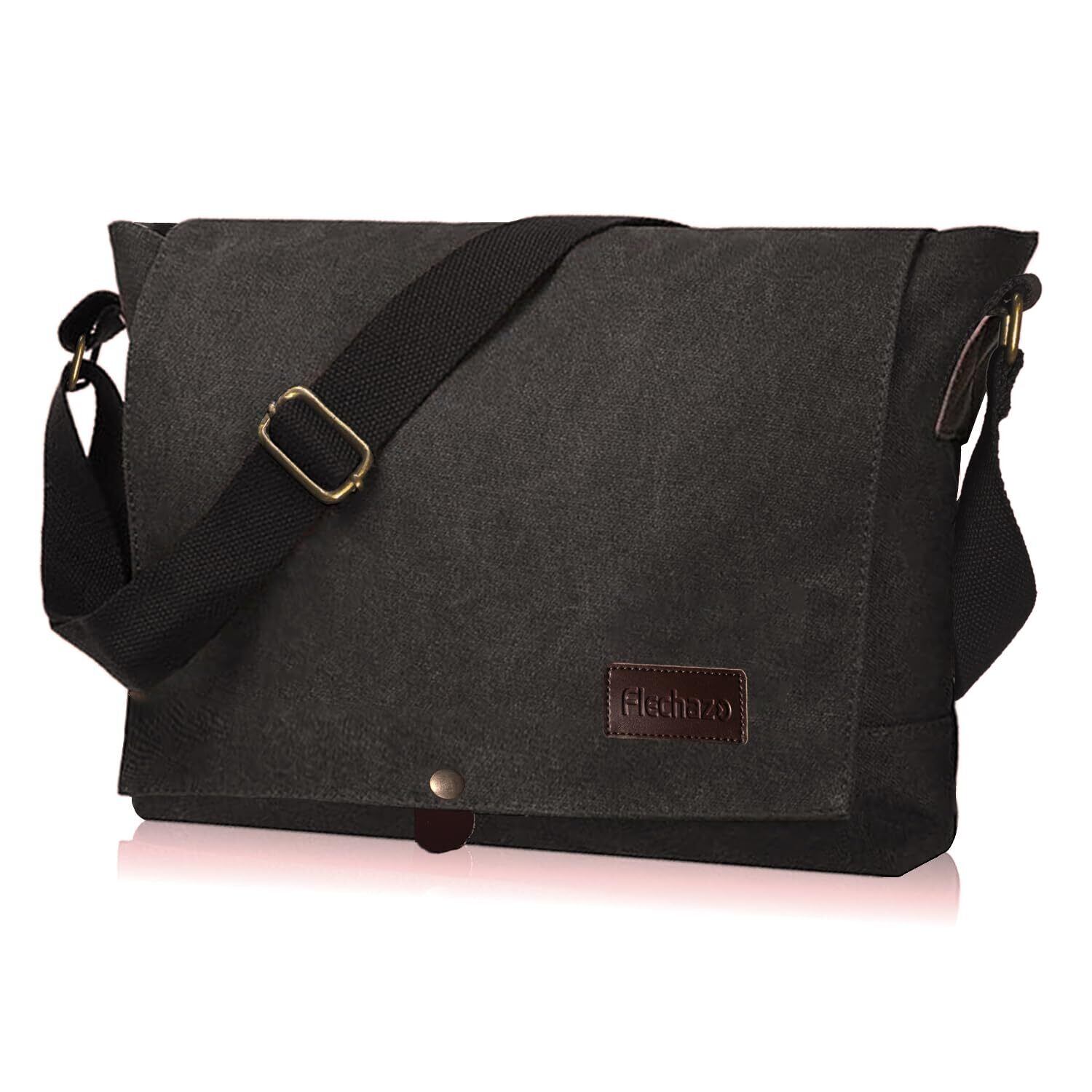 【特価セール】[Flechazo] ショルダーバッグ メンズ メッセンジャーバッグ 厚手帆布 育つ本革 YKKファスナー A4対応 14インチ 大容量 通勤 旅行 軽量 一生モノ