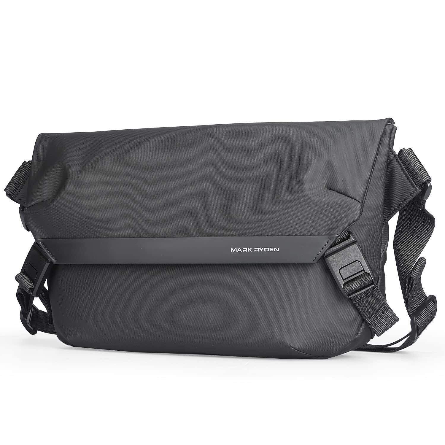 [Muzee] [MR2819] メッセンジャーバッグ メンズ レディース 斜めがけ 防水 出張 ウォーキング ウエストバッグ 肩がけ ポケット 撥水加工 旅行 かっこいい カバン ブラック