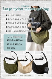 【特価商品】[Aquamie] メッセンジャーバッグ 斜めがけ ナイロン ショルダー バッグ 無地 軽量 学生 A4