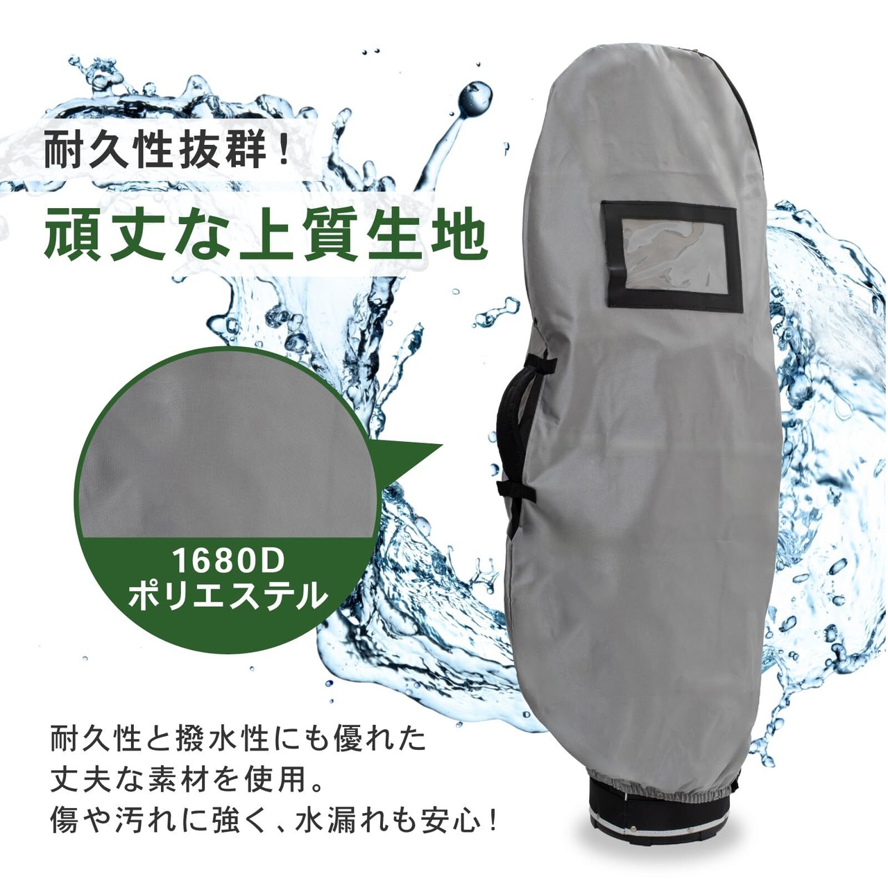 【耐久性に優れたトラベルカバー】 あなたの大事なキャディバッグを守るため、耐久性の優れた頑丈な素材のポリエステルを使用しております。繰り返し何度も使用するものなので耐久性は重要です。ポリエステルは汚れや摩擦にも強い為、航空便での輸送でも大切なキャディバッグを傷や汚れから守ります。また、サイドにマジックテープも付いており、キャディバッグの肩紐を出すだけでトラベルカバーを装着したまま移動することも可能です。