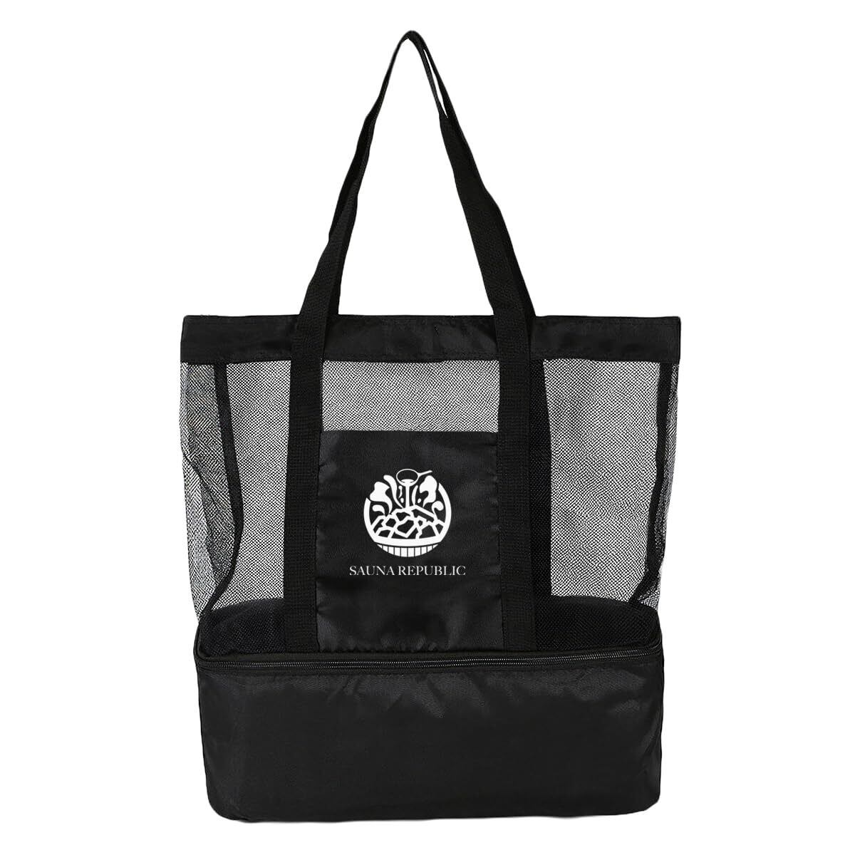 [SAUNA REPUBLIC] 保冷トートバッグ メッシュ 軽量 大容量 2層構造 底部保冷ポケット付 サウナバッグ 銭湯 プール ジム アウトドア 仕切り・防水加工 メンズ レディース おしゃれ 23.2L ブラック