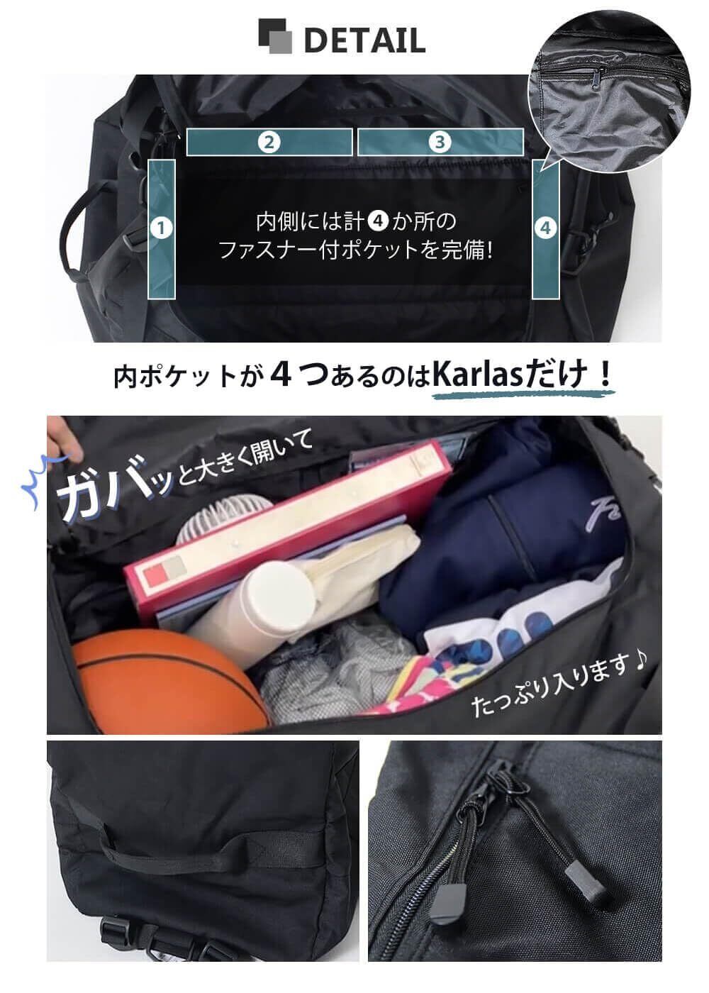 1〜3泊分の荷物が収納でき、50Lの大容量を誇ります。スポーツバッグとして、またアウトドアやジムにも活躍します。修学旅行、遠足、出張、研修、さらには緊急災害用としても最適です。学生から大人まで、あらゆるシーンで活躍します。