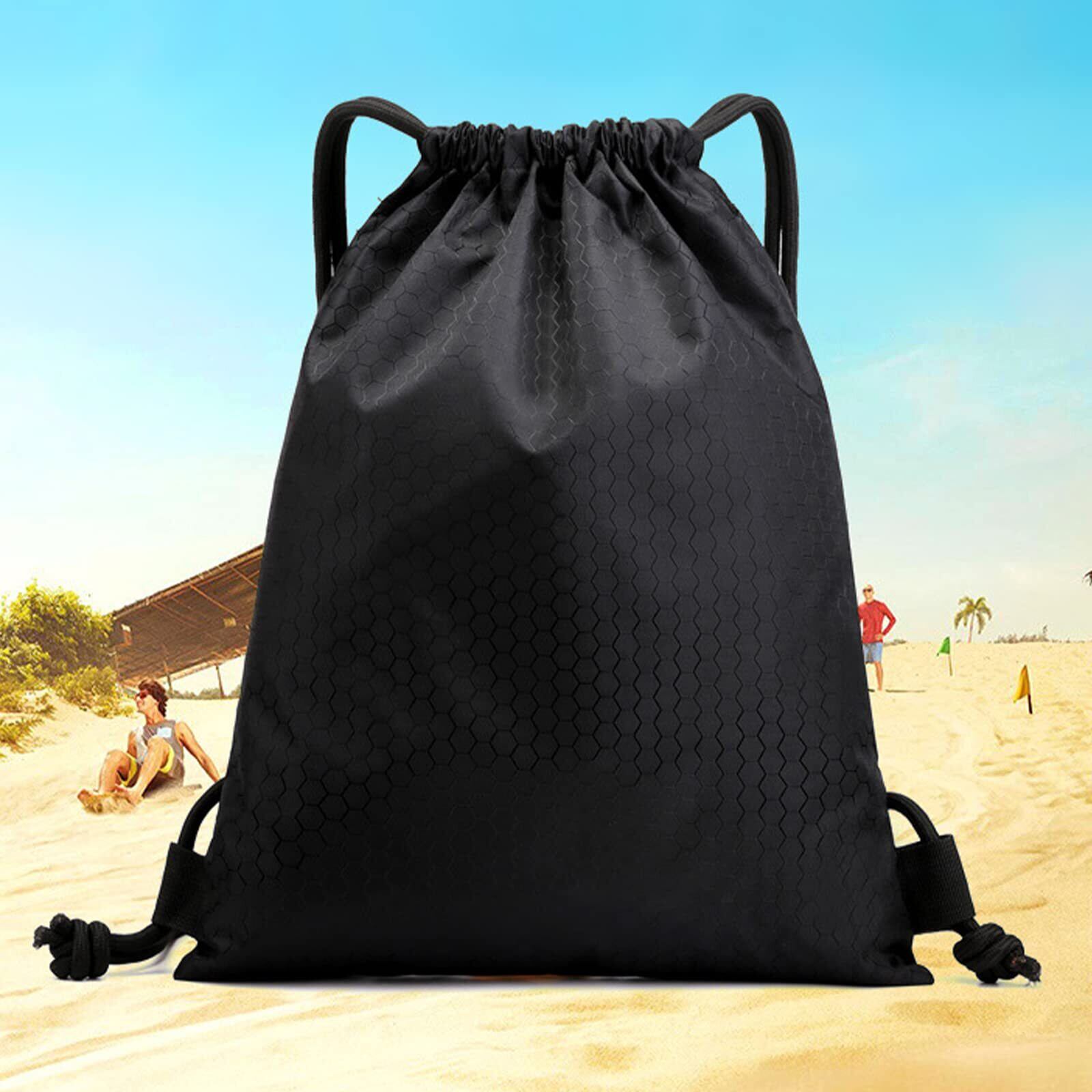 ジムサック スポーツバッグ ナップサック リュックサック 防水バッグ ケース 巾着 シューズ収納 軽量 水泳 部活 サークル 運動 旅行 キャンプ 小物防水袋1枚つき ブラック