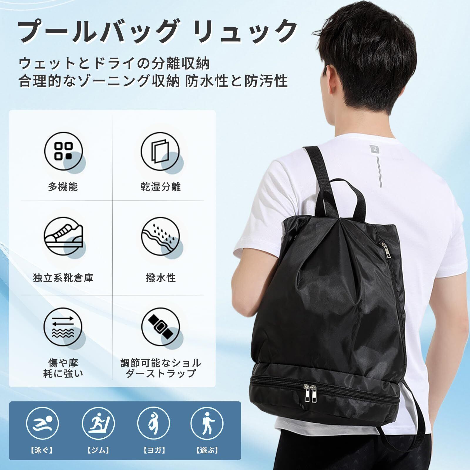 【数量限定】[雲見] プールバッグ 女の子 男の子 小学生 大人 ナップサック 水泳 バッグ ジムサック リュック 防水 軽量 乾湿分離 シューズ収納 大容量 折り畳み 多機能 傷や摩耗に強い おしゃれ 水泳 運動 ビーチ遊び 修学旅行 部活動 アウトドア 男女兼用