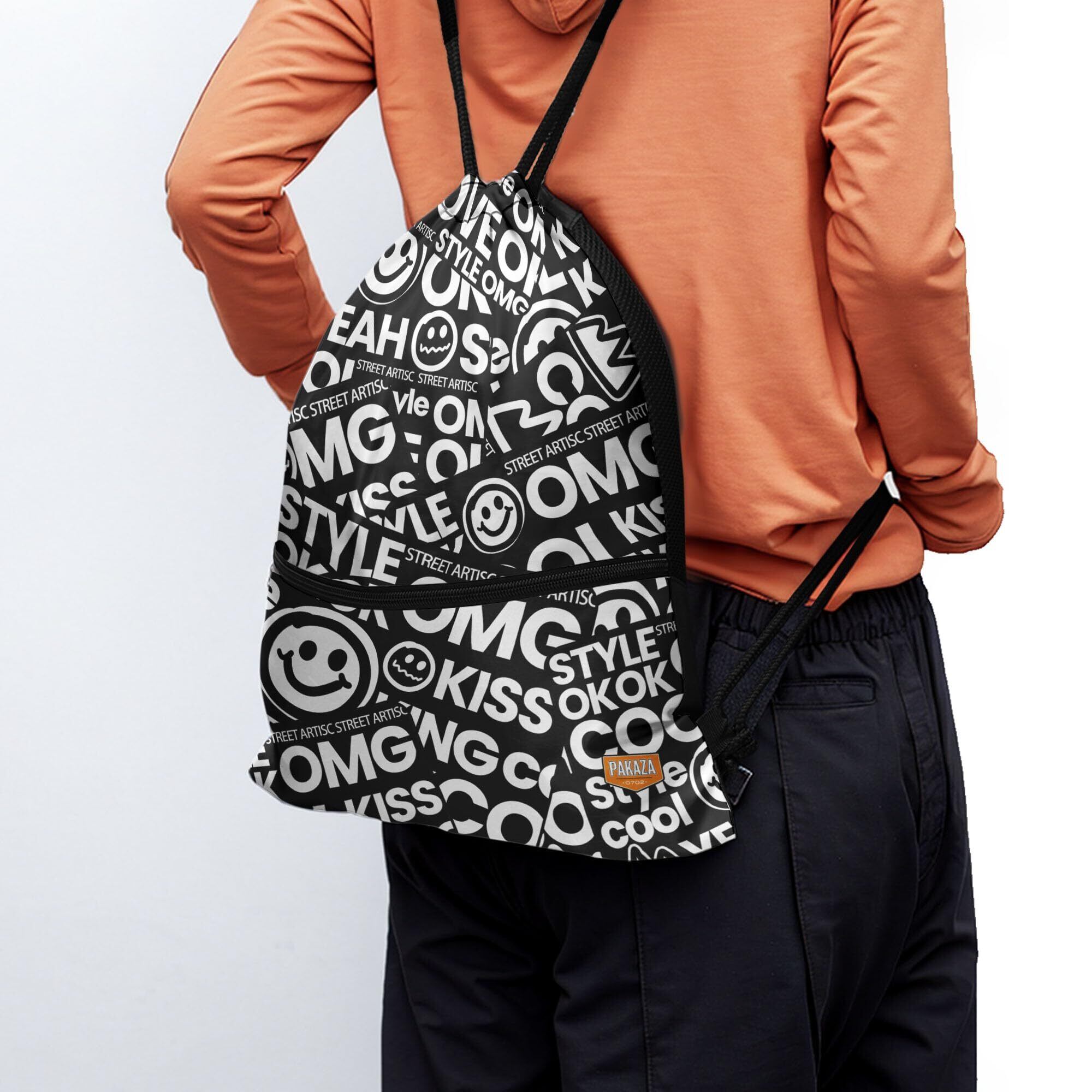 ヒップホップのデザイン:大胆なモノトーンに「OMG」「COOL」「STYLE」などのスラングとスマイルアイコンを散りばめたこのナップサックは、まさにストリートカルチャーのエネルギーを体現。視認性の高いロゴ配置で、ブランド認知もアップ。ダンスイベント、音楽フェス、スケートボード、クラブ活動、原宿・渋谷系のファッションコーデ、日常の通学・通勤にもおすすめ。ファッション感度の高い若者やZ世代、ヒップホップやグラフィティ好きに最適。誕生日、バレンタインデー、ストリート系イベントやライブにもピッタリのギフト。ユニセックスで使いやすく、コーデの主役になる一枚です。