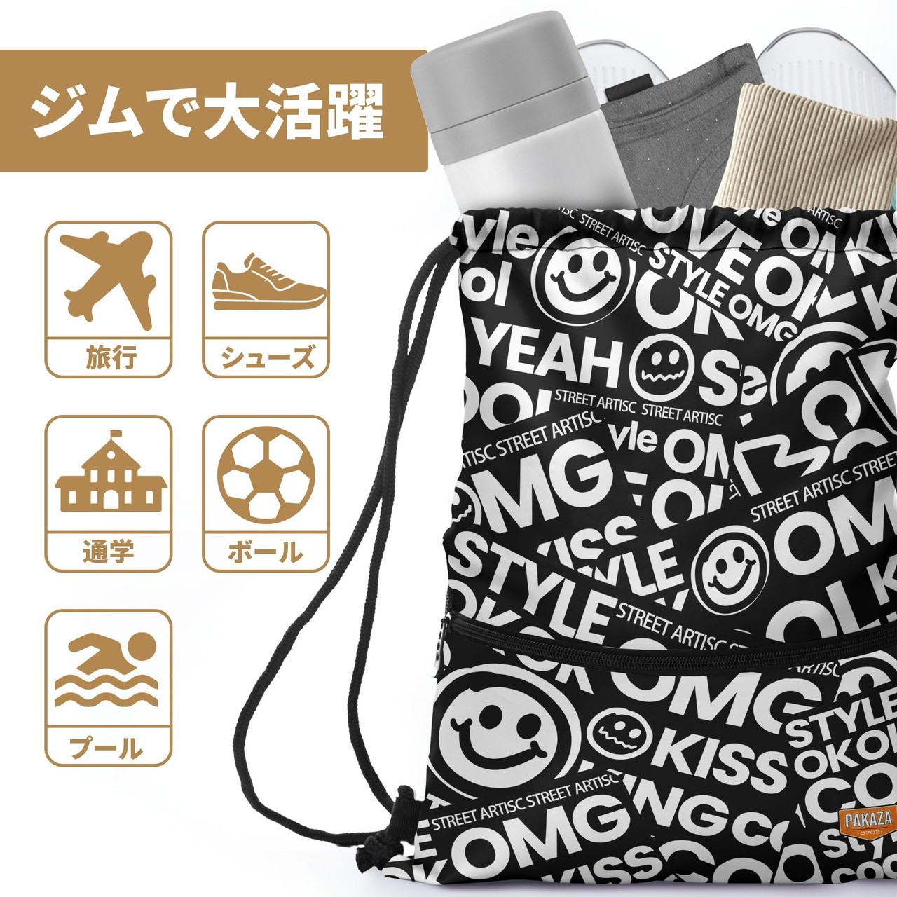 【人気商品】[PAKAZA] ナップサック ジムバッグ ヨガ 巾着 体操着 プールバッグ 旅行用 温泉バッグ ジムサック おしゃれ 折り畳み 大容量 軽量 スポーツ 大きめ