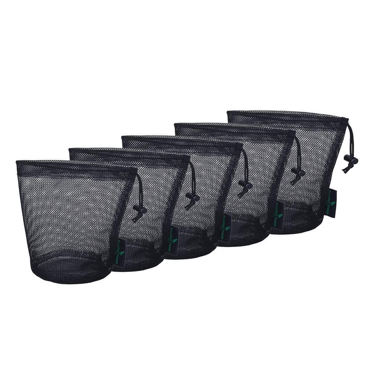 Boundless Voyage【5枚セット】メッシュバッグ 丸底 ストリングネットバッグ ナイロン収納ポーチ 旅行 アウトドア調整器具/ゴルフ/化粧品など小物収納 ブラック