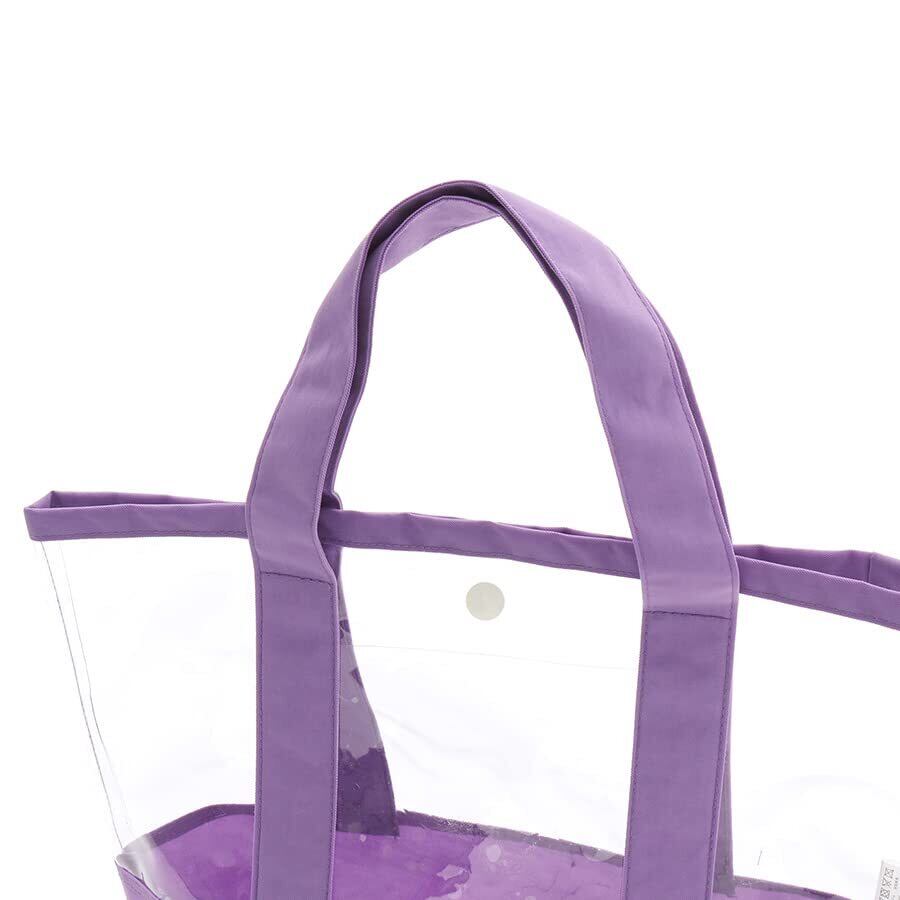 ベーシックなトートデザインのプールバッグ ・クリア×ナイロンの配色が可愛いデザイン。 ・底面にも内側にPVCを使用し、濡れた荷物をそのまま収納できます。 ・バッグ口は、ドットボタンで、開閉可能。 素材 本体:PVC 100% 本体別布:ナイロン 100% カラー展開 ブラック(BK)/ブルー(BL)/グリーン(GR)/ラベンダー(LV)/ミント(MI)/ネオンオレンジ(NO)/ネオンイエロー(NY)/ピンク(PK) サイズ展開 F(本体口巾38cm、底巾26cm、底マチ巾12cm、丈26cm) 原産国 made in china