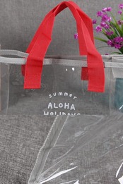 【防水PVC】耐水性PVC素材を採用した上、精密な縫製テクニックを利用して、しっかりとした生地です。また、防水で水をちゃんと弾いています。雨の日にもバッグの中身を湿すことは心配いらないです。透明のデザインなので、バッグの中身がひと目で確認できます。