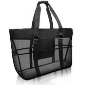 【在庫セール】CANPEKI ビーチバッグ プールバッグ 軽量 大容量 メッシュバッグ ビーチ/水泳/ジム/スパ/温泉/旅行 収納袋 手提げカバン 収納力 折り畳み可能 手提げバッグ (ブラック)
