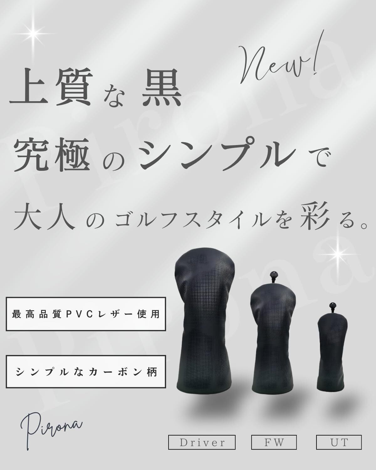 【国内ブランド Pirona】 ゴルフ ヘッドカバー 最高級PVCレザー使用 カーボン柄 ドライバー フェアウェイウッド ユーティリティ 番手表示タグ付き(#2~#7, "X")防水仕様