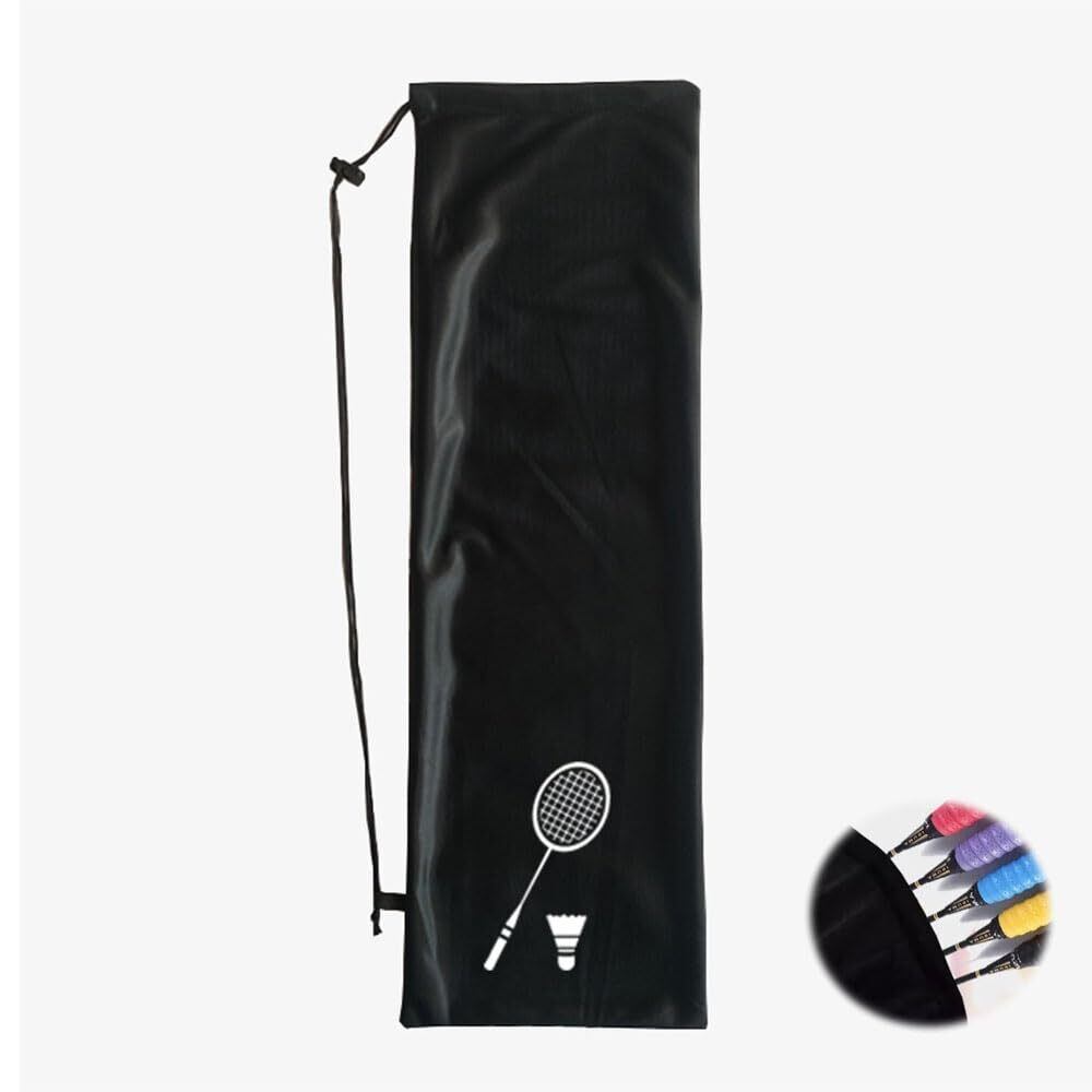 バドミントンラケットケース バッグ ポータブル 持ち運び便利 収納便利 軽量ナイロン製 男女兼用 シングルショルダー 巾着ポーチタイプ ラケット用ソフトケース 学校・部活・練習・コート用 ブラック
