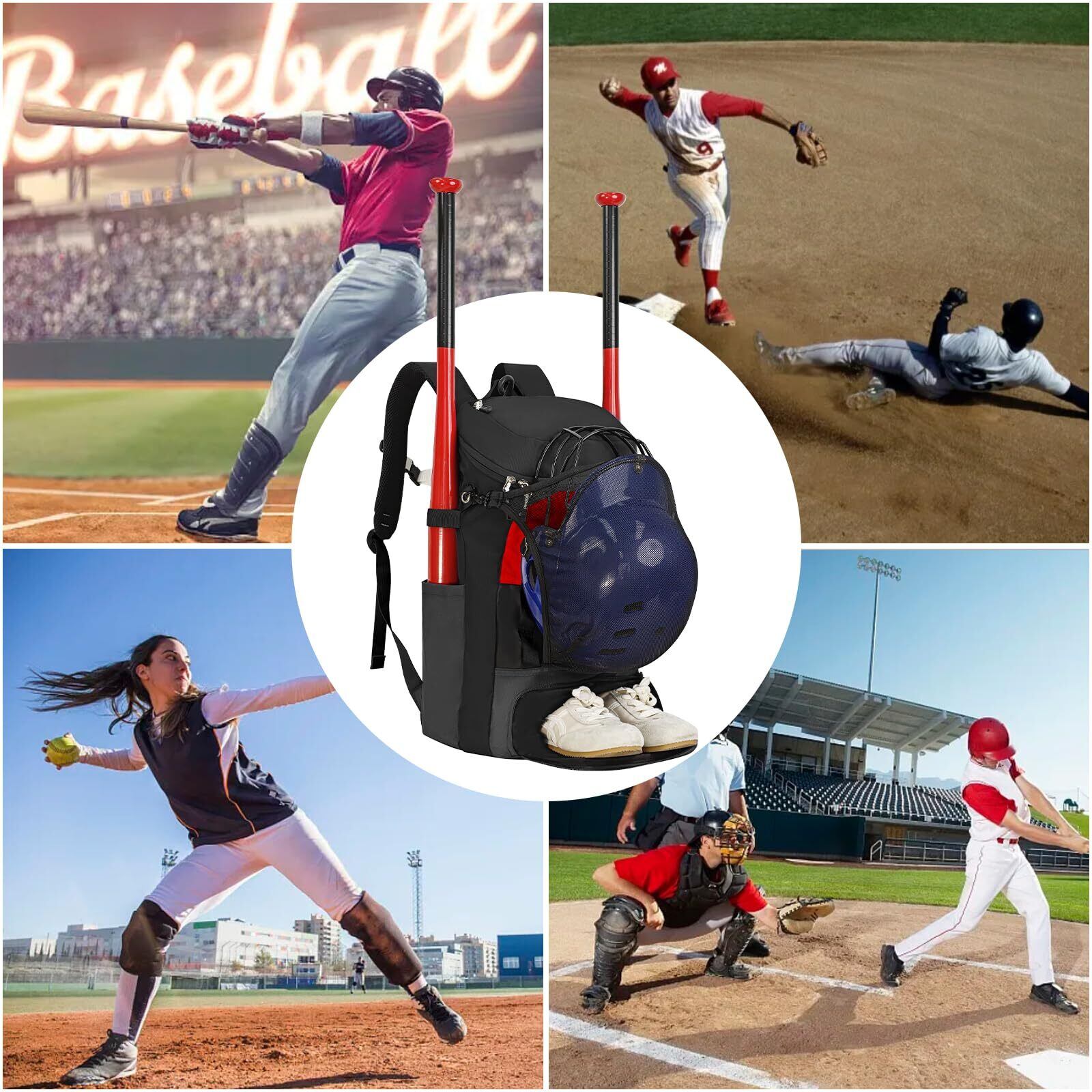 【優れたデザイン&持ち運び便利】2つのサイド野球バットカバーがバットを摩耗や損傷から保護します。底部にある隔離換気された靴コンパートメントは、靴を他のアイテムから分離します。持ち運びに便利な野球バックパックは、持ち運びに便利なハンドル、パッド入りショルダーストラップ、クッション付きランバーサポートを備えています。ウエストのバックルがバッグを所定の位置に保ちます。この野球リュックは若者にも大人にも適しています。