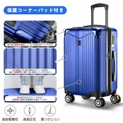 【20%容量拡張&高品質コーナーパッド】スーツケースの拡張機能を利用すれば、マチ幅が5cmほど拡張し、約20%内容量を増加。ABS樹脂とPC混合素材のボディーはただのABS素材より軽量で耐圧性、耐久性に優れています。コーナーパッド付きで、耐衝撃性も抜群です。