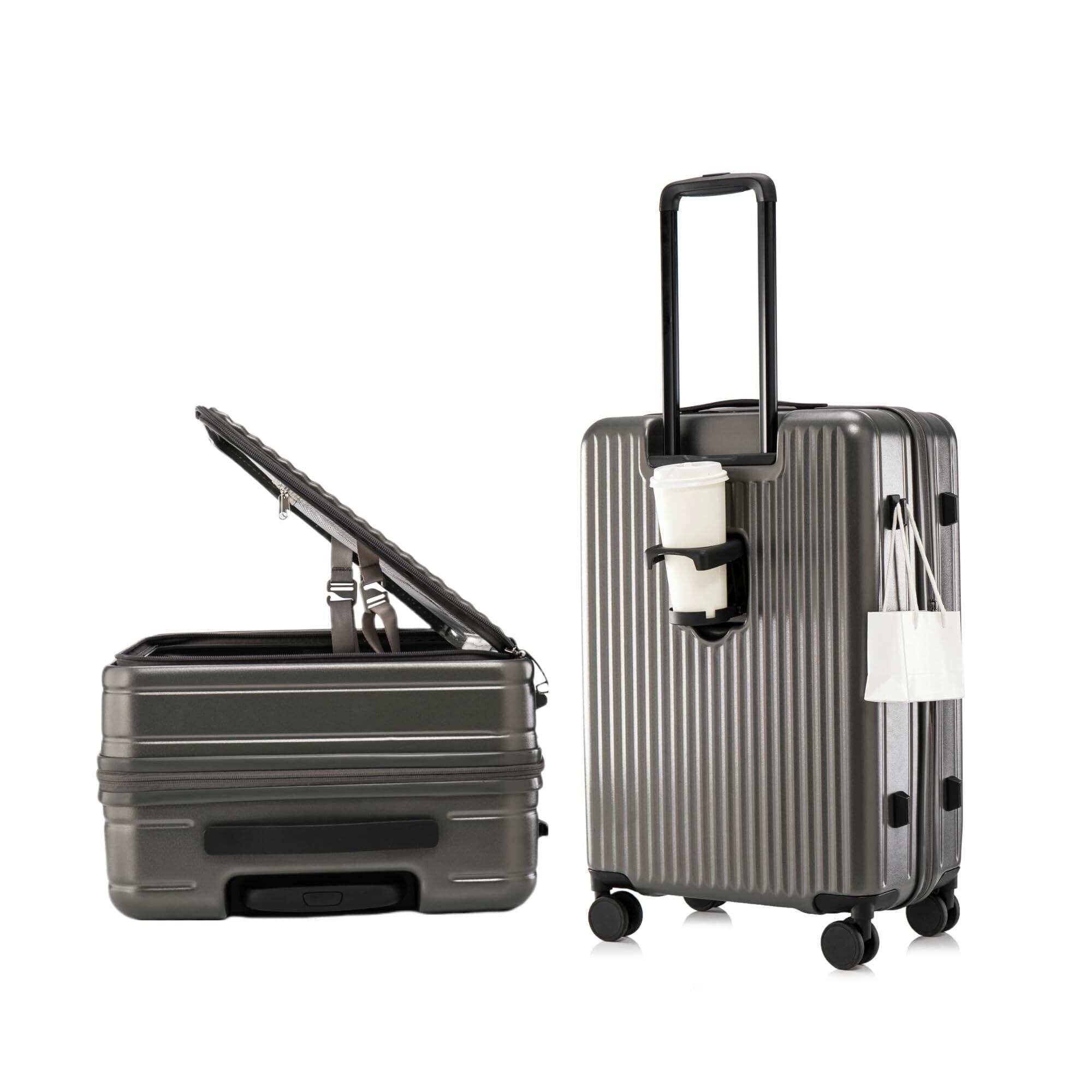 【在庫セール】[Yuweijie] スーツケース キャリーケース 片開き 拡張機能付き フロントオープン 大容量 機内持ち込み 超軽量 ファスナータイプ カップホルダー付き TSAロック キャリーバッグ 横開き ビジネス 旅行 出張 一週間 チャコールグレー 70~85リットル Lサイズ 7泊