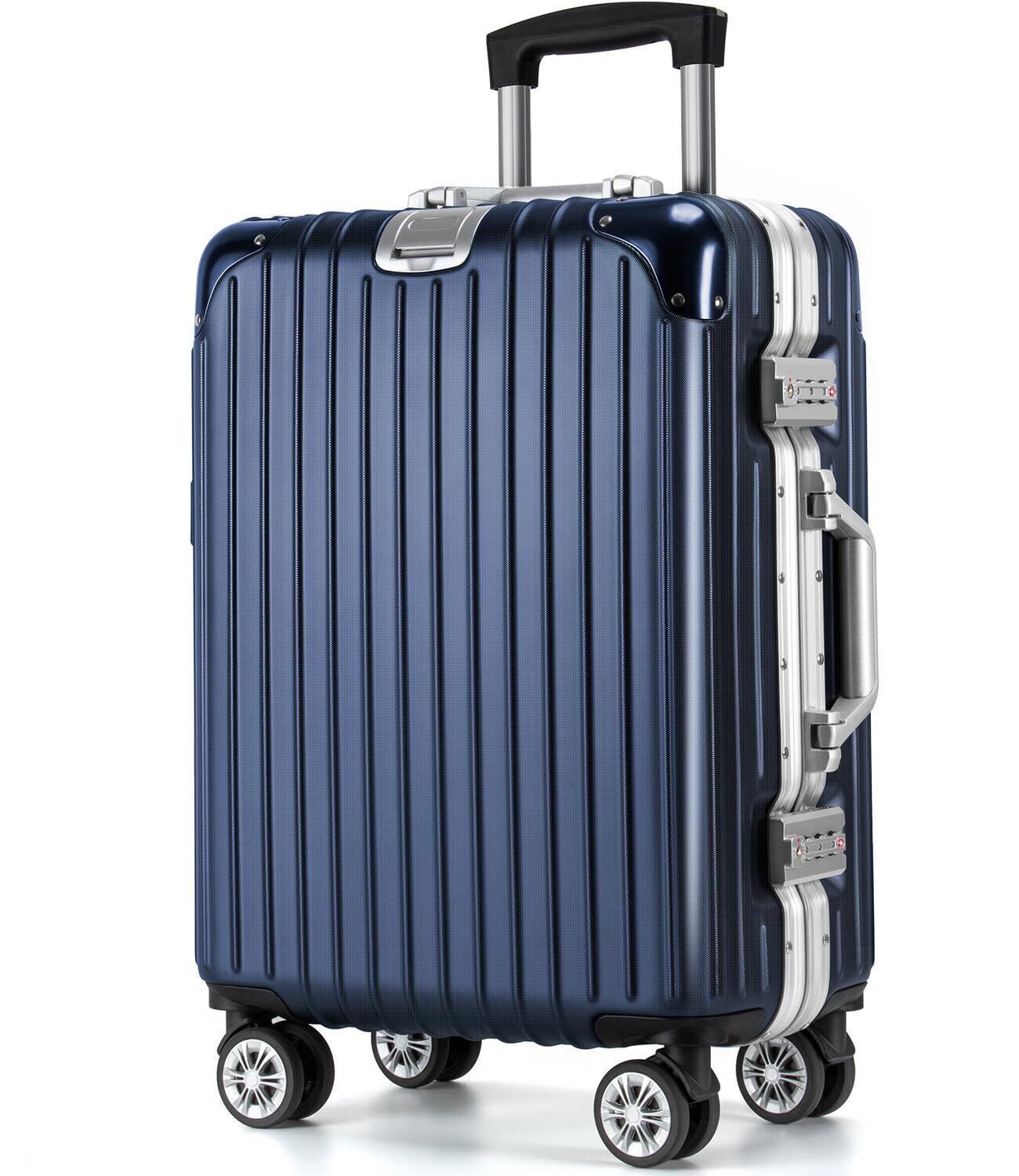 [VARNIC] スーツケース キャリーケース キャリーバッグ アルミフレーム 大型 静音 ダブルキャスター 耐衝撃 360度回転 TSAダイヤルロック 旅行 出張 (L, ブルー)