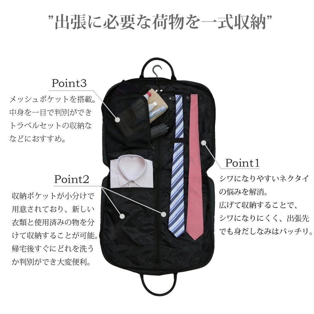 ビジネスマンであればキレイなスーツを着るのが常識。只、簡易なガーメントバッグだと持ち運びの際にシワが付いてしまうことも。この悩みを解決するのがこのガーメントバッグ。持ち運ぶ際にスーツがズレてシワにならないよう考えられた設計。
