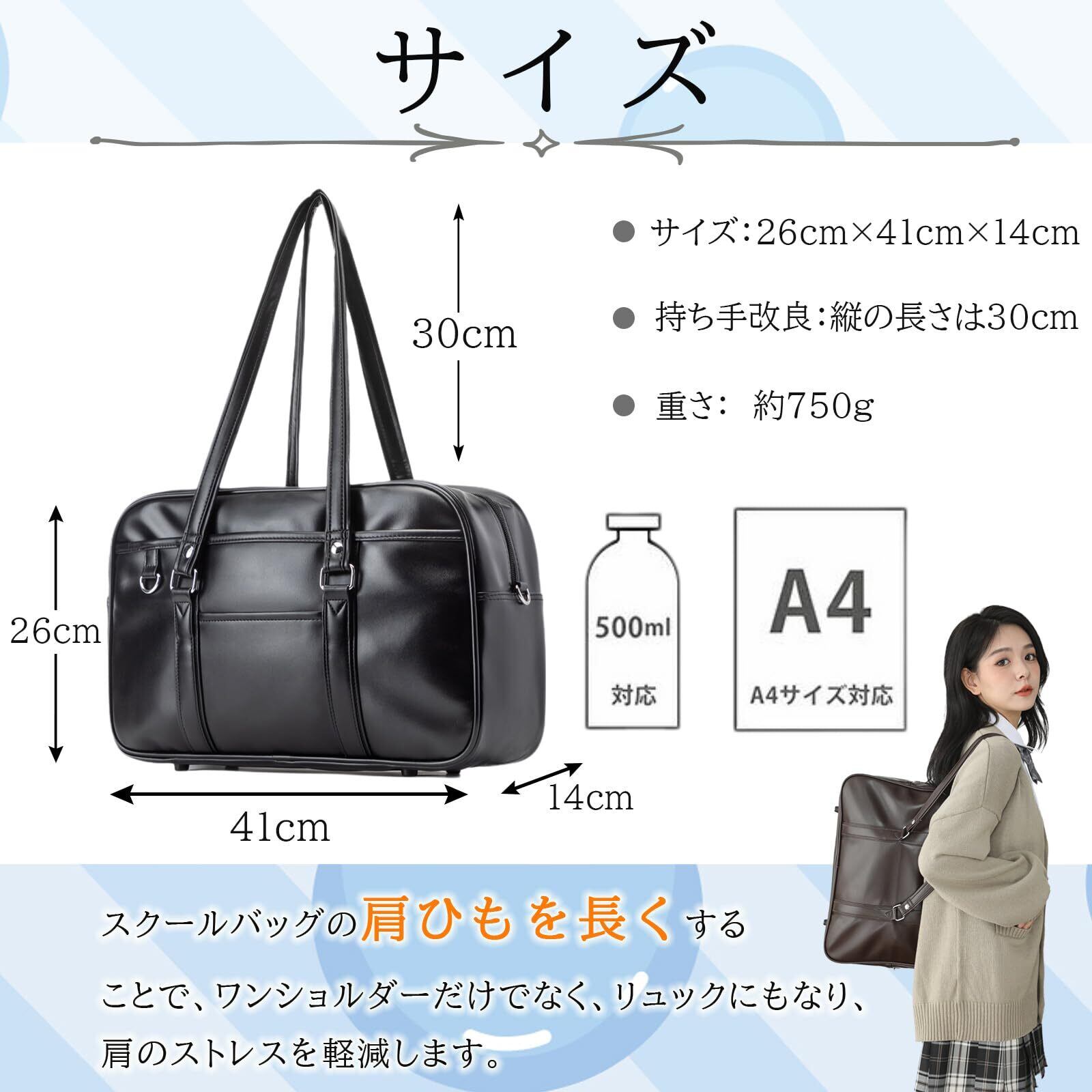 【人気商品】[Wowcarbazole] スクールバッグ 高校生 女子 合皮 スクバ 学生 通学 大容量 ボストンバッグ 軽量 肩紐長い 男女兼用