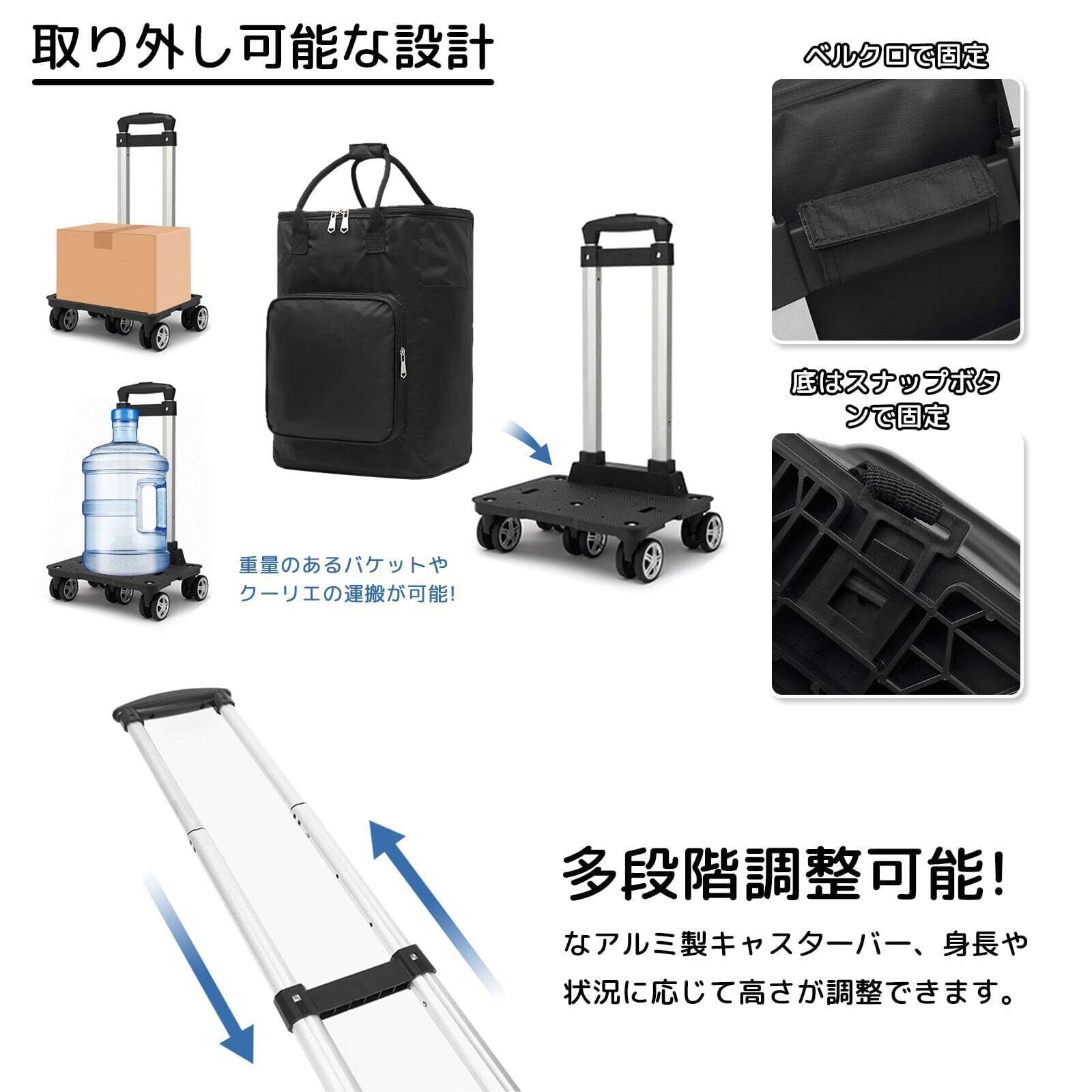 【ハンドルの高さ調節可能/防水断熱バッグ】 取り外し可能なショッピングバッグは、防水で漏れにくく、お手入れが簡単な二重構造の断熱材でできています。雨や雪から中身を守り、食品の鮮度を長持ちさせます。 大人から子供まで幅広く使用でき、荷物の大きさや重さに合わせて持ち手の高さを調節できるので、持ち運び時の負担を軽減します。折りたたみ式のショッピングトロリーなら、大量の荷物を持ち運ぶ際にも便利です。