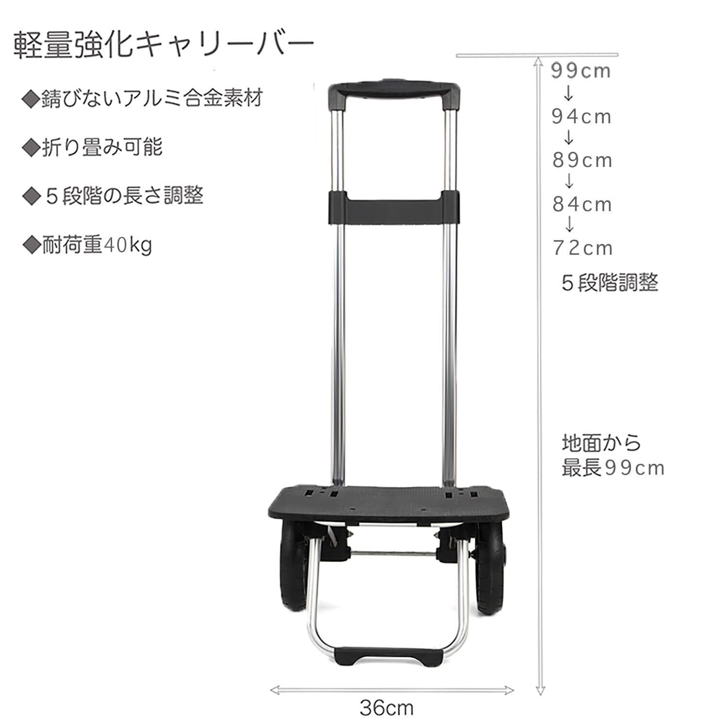 【荷台カートでも使える】カバンを外してカートとしても使えます。サビにも強い軽量強化のアルミ合金仕様。大容量で買い物に最適なサイズです。