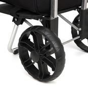 【階段も楽々上がれる】大型のキャスター付きで、砂利道や段差もスムーズに走行できます。