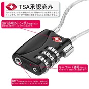 ZHEGE TSAロック 南京錠 ワイヤータイプ 旅行用 安心 防犯グッズ 3桁ダイヤル式ロック(ブラック)