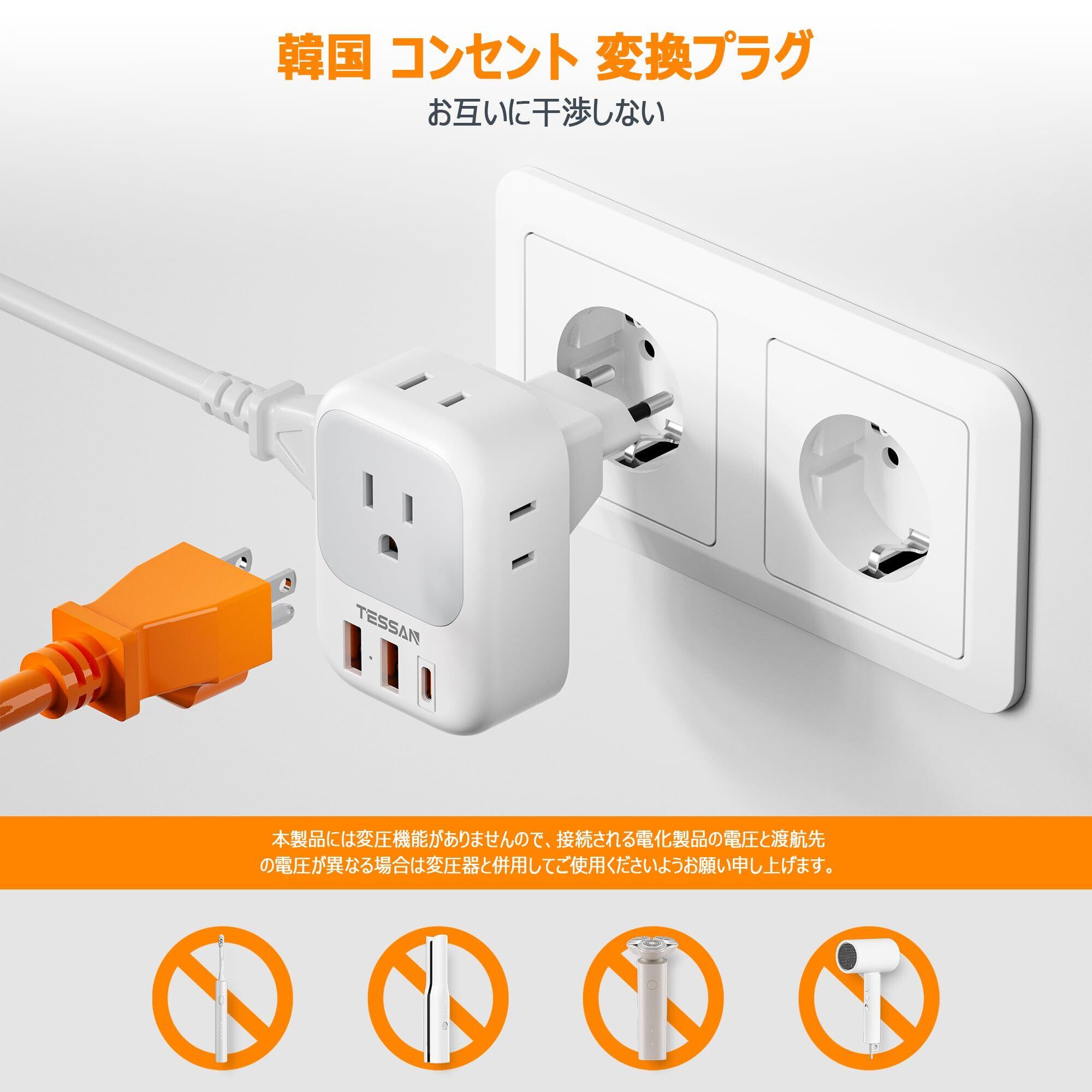 韓国 変換プラグ cタイプ TESSAN 折りたたみ式 C型 海外コンセント 変換プラグ 4個AC差込口 1つUSB-Cと2つUSB-A 変換器 電源変換アダプター ドイツ ベトナム タイヨーロッパ イタリア スペイン 海外旅行 便利グッズ